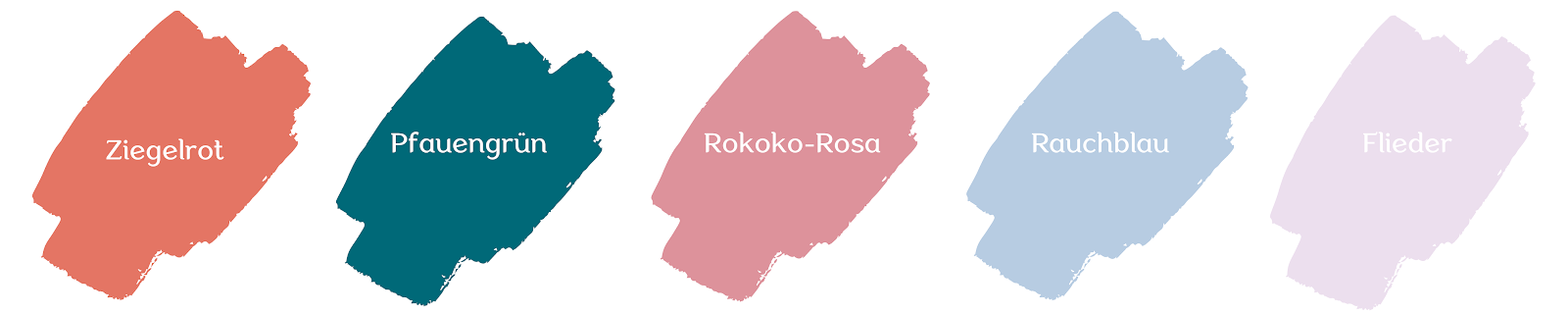 Farbkarton Pfauengrün, Rauchblau, Rokoko-Rosa, Flieder, Ziegelrot