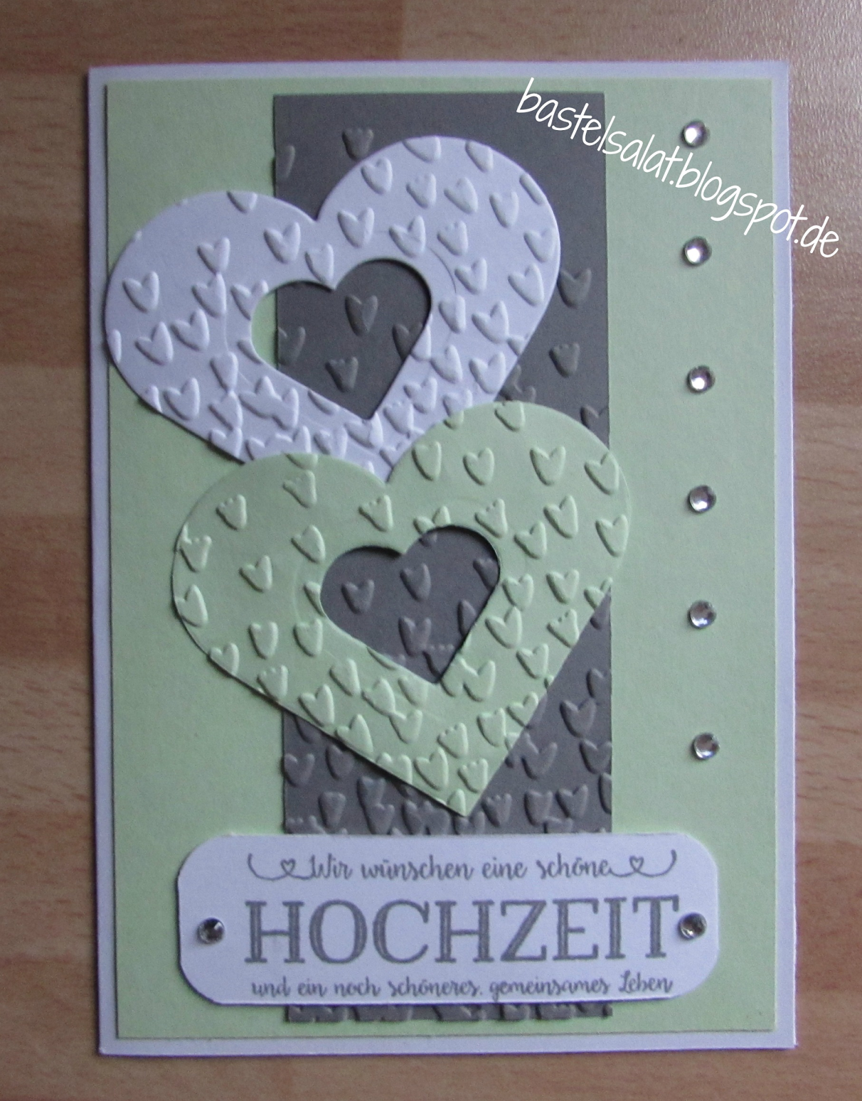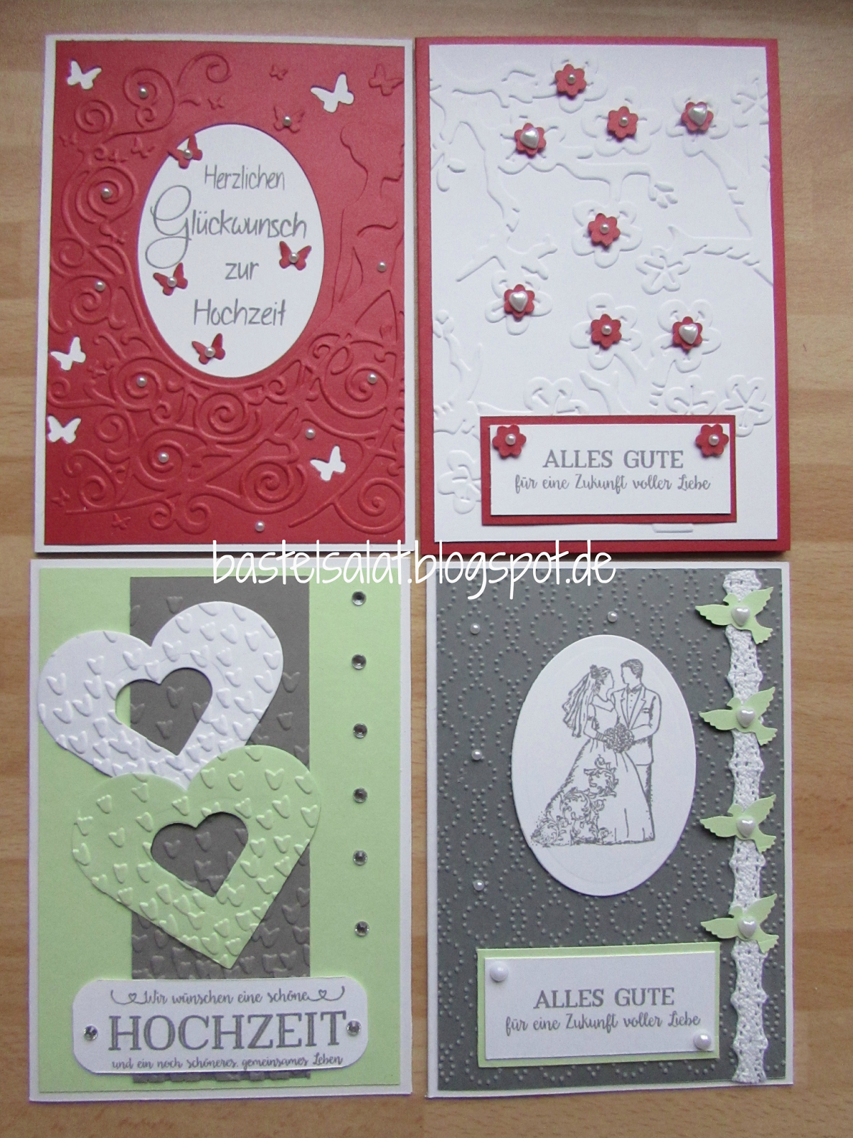 Letzte Woche bin ich wegen Hochzeitskarten angesprochen worden und da ich keine mehr auf Vorrat hatte, drehte sich heute bei mir alles um das Thema „Glückwünsche zur Hochzeit“.