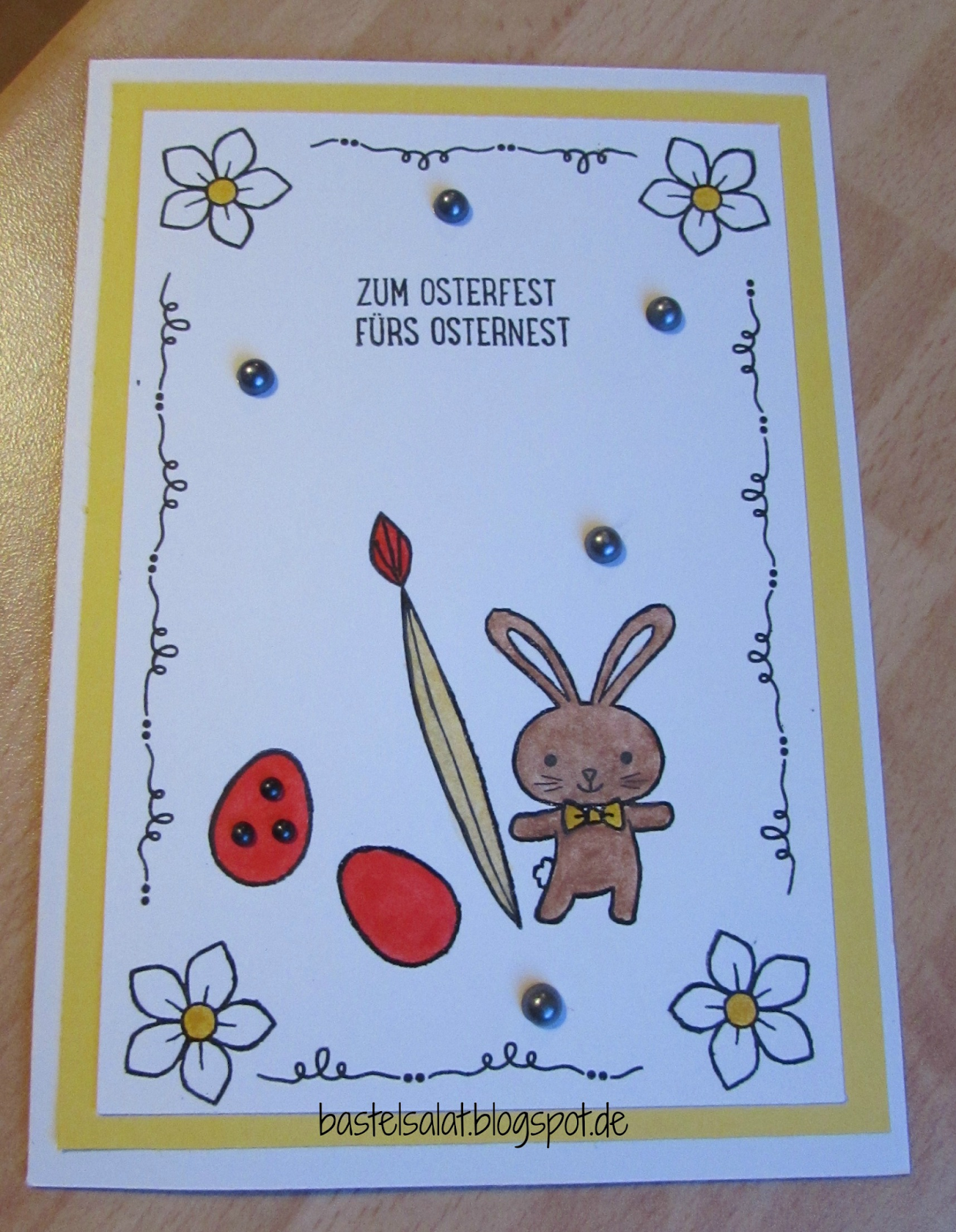 Welche Karte ist euer Favorit? Mir gefallen alle sehr gut, aber ich muss gestehen, der kleine Hase mit seinem Pinsel hat es mir am meisten angetan đ.
