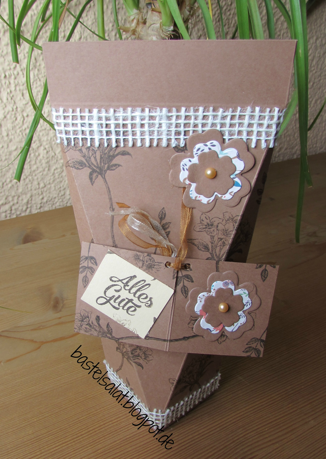 Um das Geschenk schön zu verpacken habe ich eine „selbstschließende Box“ und eine kleine Glückwunschkarte gewerkelt.
