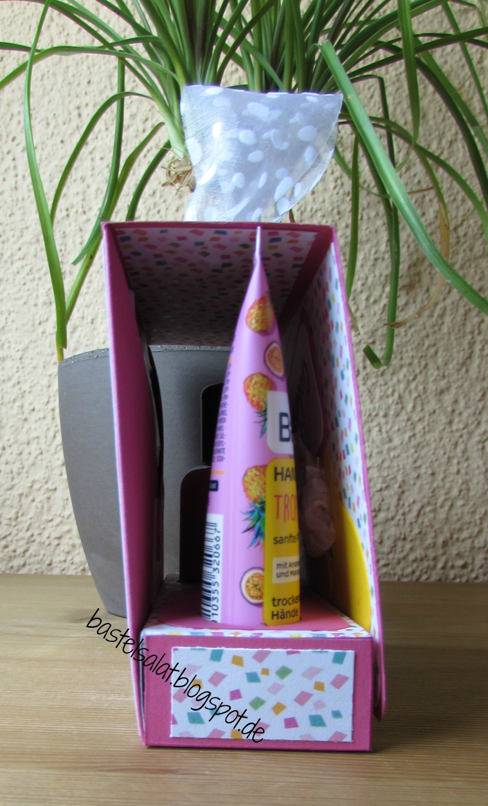 Im inneren ist Platz für eine kleine Handcreme, ein Labello, Duschcreme und eine Gesichtsmaske.