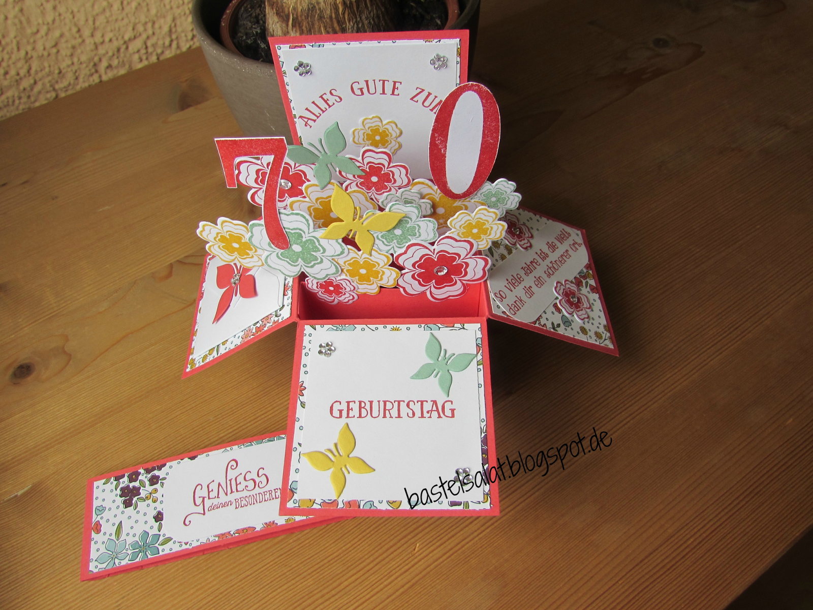 Eine Verpackung mit „Wow“-Effekt, zum „70“ Geburtstag, für die längste und allerbeste Freundin, mit einem Gutschein für „Einen Überraschungstag“.