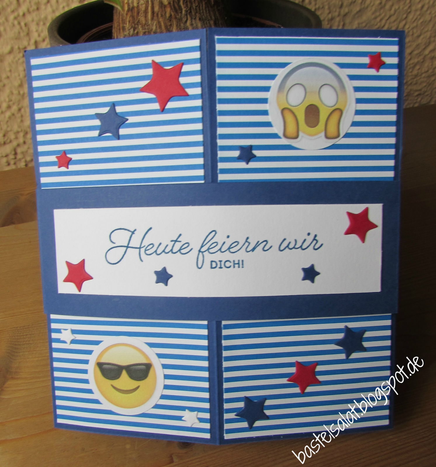 Bei der „Card in a Box“ für den Jungen, welcher Emoji’s toll findet, viel die Farbauswahl auf „Pazifikblau“.