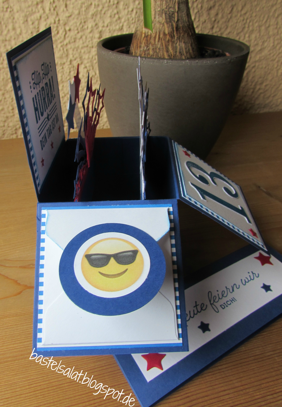 Bei der „Card in a Box“ für den Jungen, welcher Emoji’s toll findet, viel die Farbauswahl auf „Pazifikblau“.