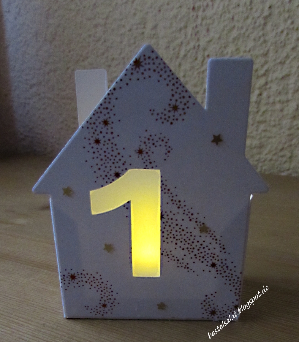 Damit man die LED-Kerzen nicht sieht und auch damit das Kerzenlicht schöner schimmert, habe ich hinter die Zahlen Pergamentpapier geklebt.