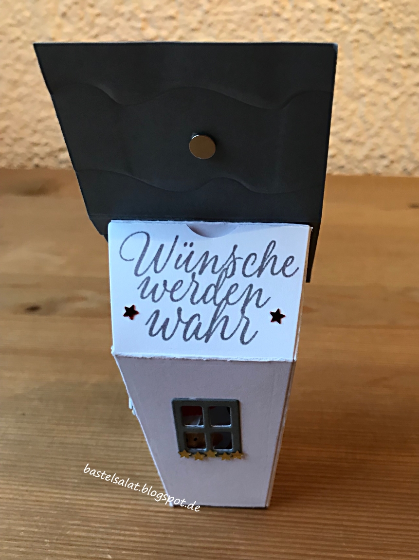 Für das Dach sind diesmal nicht die Dachschindeln aus den Thinlits, sondern die Tiefen-Prägeform Rüschen zum Einsatz gekommen.