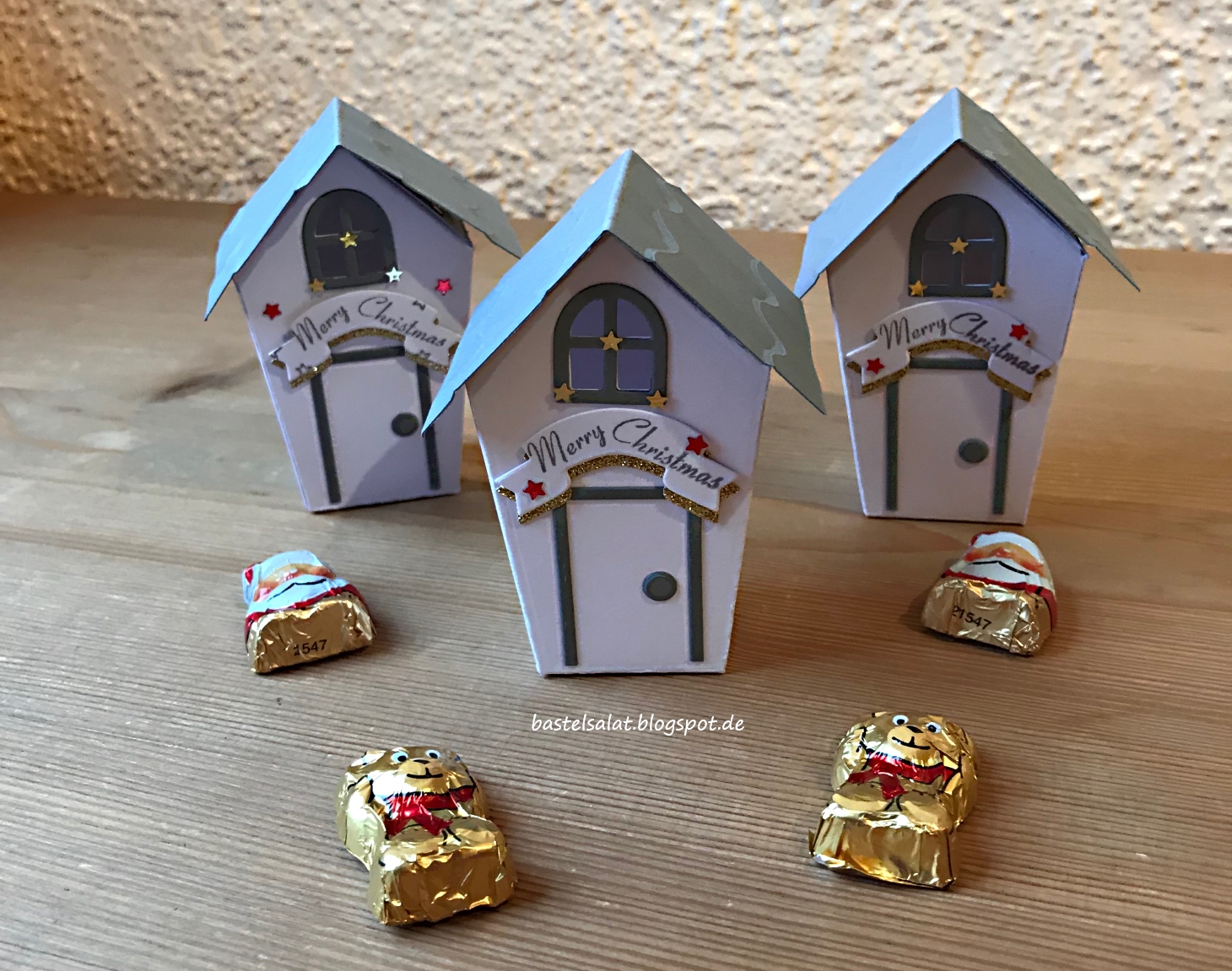 Die gewerkelten Häuschen wurden nicht nur mit kleinen Schokonikoläusen und Schokoschneemänner gefüllt, sondern es wurde auch noch Geld darin versteckt.