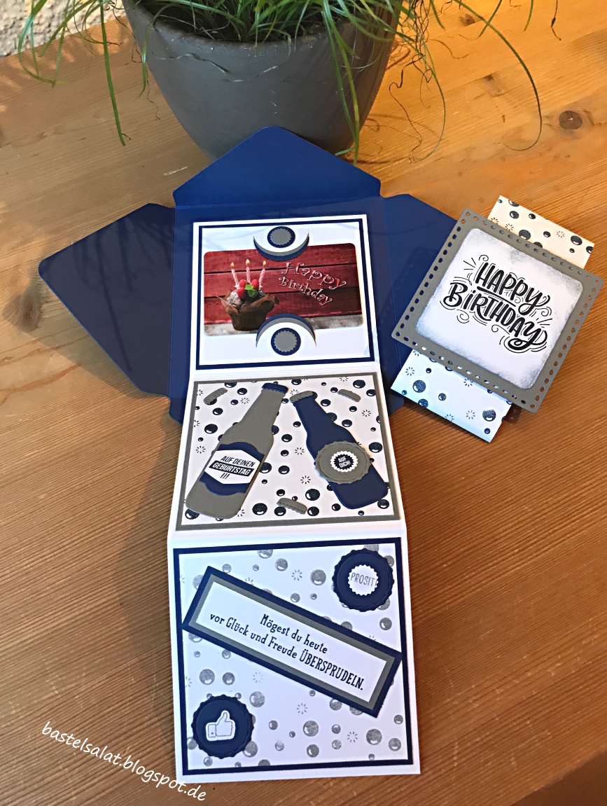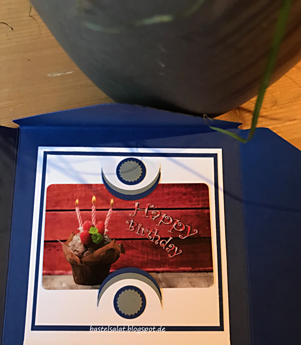 Zum Geburtstag meines Schwagers habe ich eine Umschlag-Karte bzw. ein Mini-Leporello im Umschlag mit einem Gutscheinkartenfach gewerkelt.