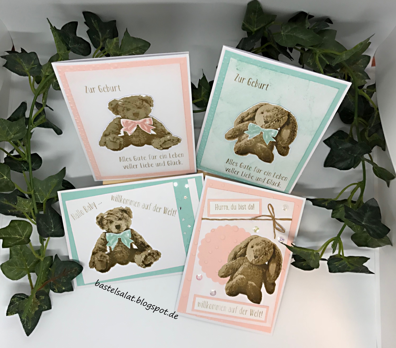 Es hat mir soviel Spaß gemacht mit den Stempelsets „Süßes Häschen“ und „Unentbärliche Grüße“ zu werkeln, das ich einfach nicht anders konnte als noch ein paar Glückwunschkarten damit zu gestalten.