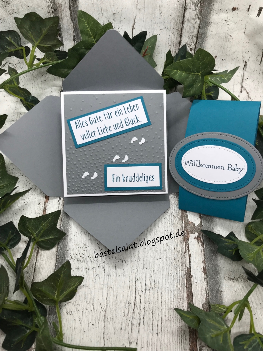 Mit den selben Farbwünschen und auch zur Geburt (beide Aufträge kamen fast zeitgleich 😆) zeige ich euch nun noch ein weiteres Mini-Leporello im Umschlag.