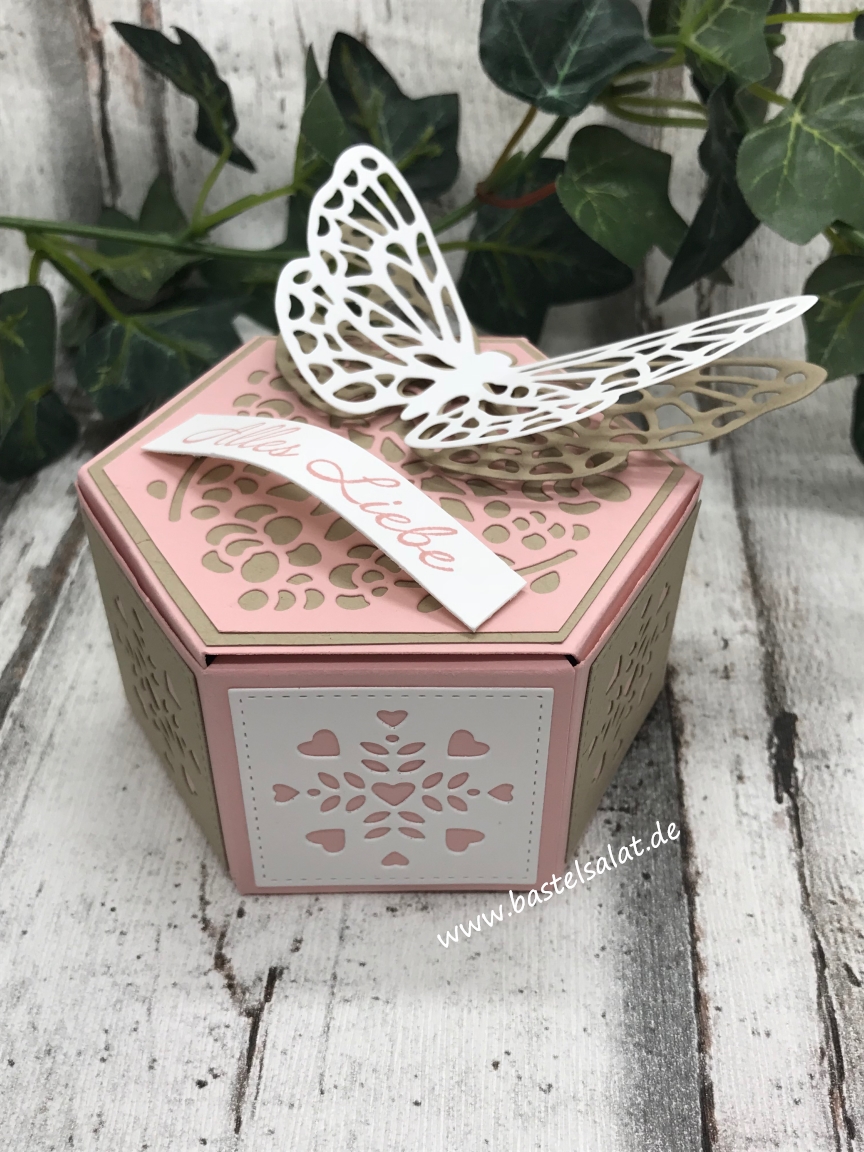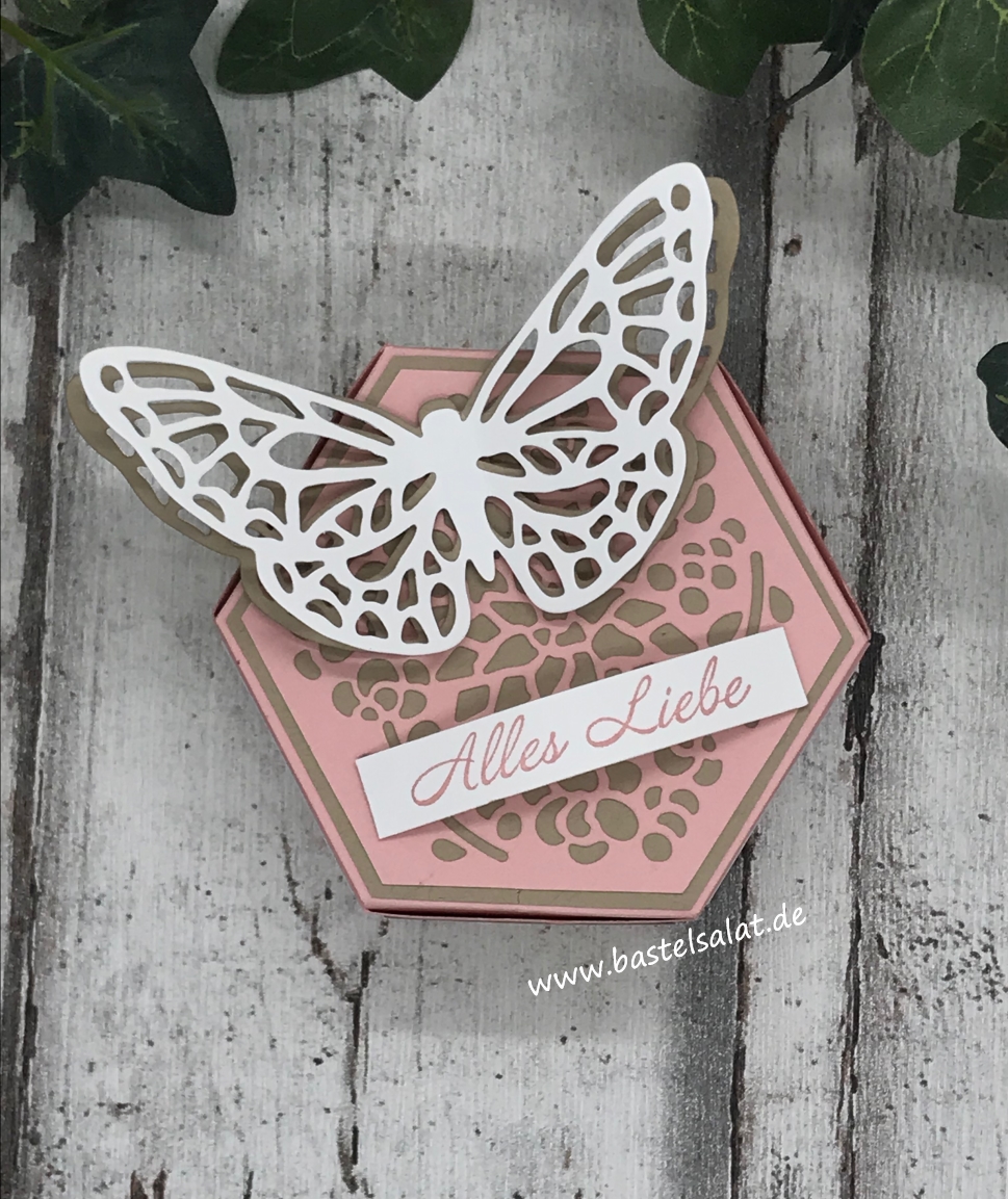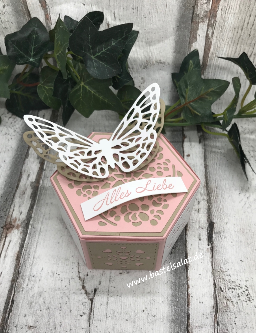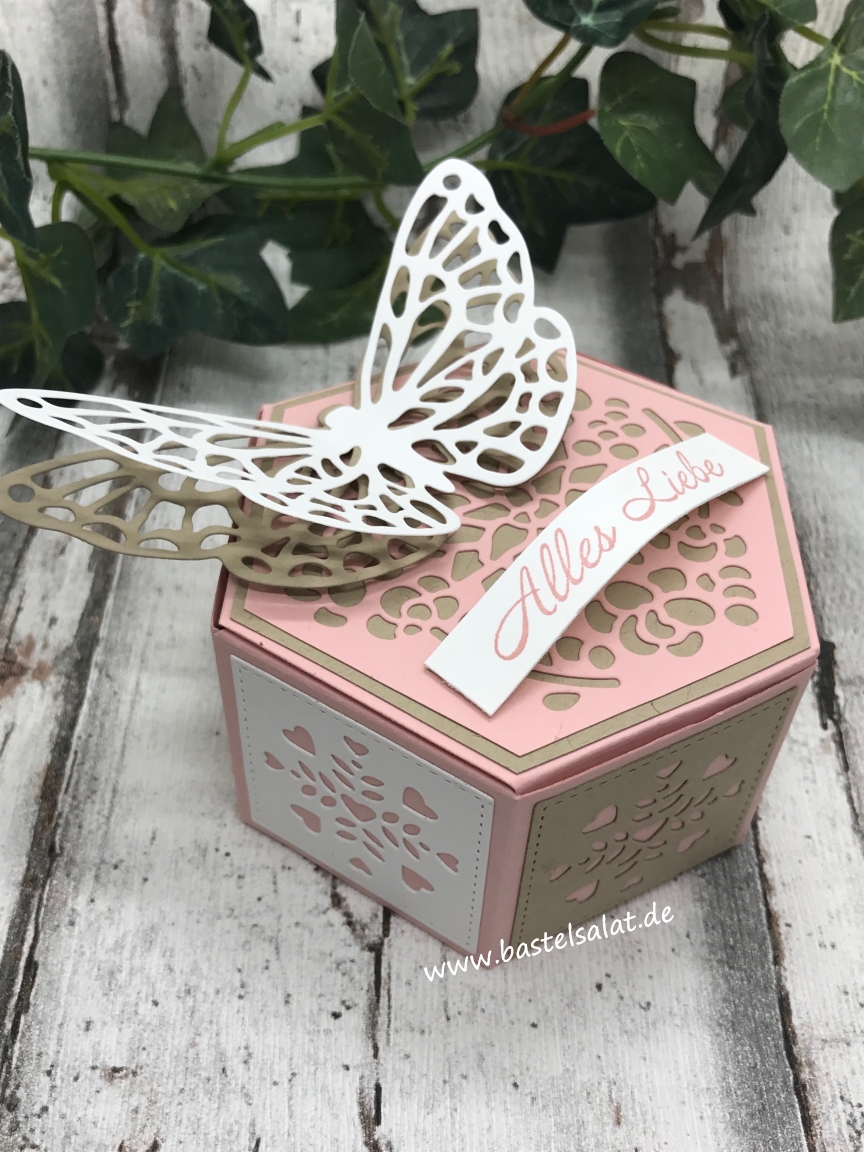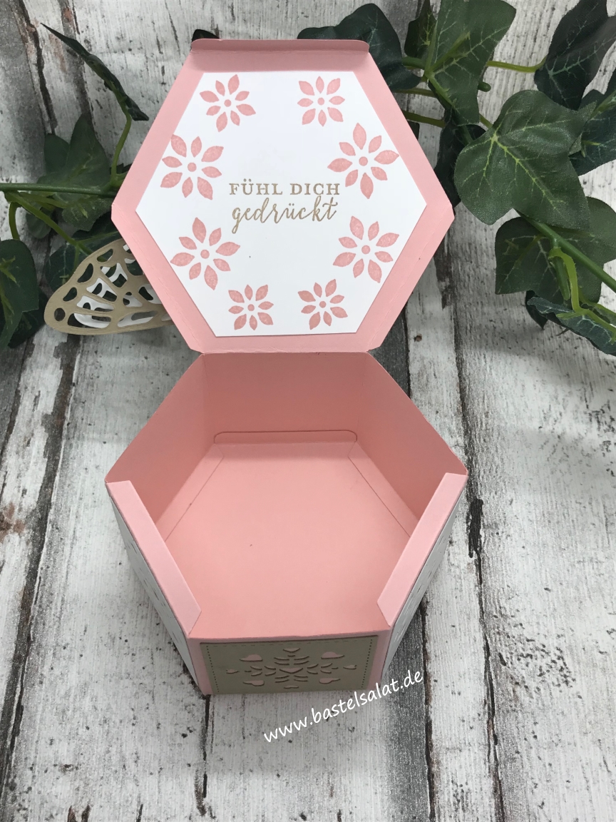 Bei dieser sechseckigen Geschenkbox habe ich auf die Thinlits „Fensterschachtel“ (diese findet ihr auch im neuen Jahreskatalog wieder đ) zurĂŒckgegriffen.
