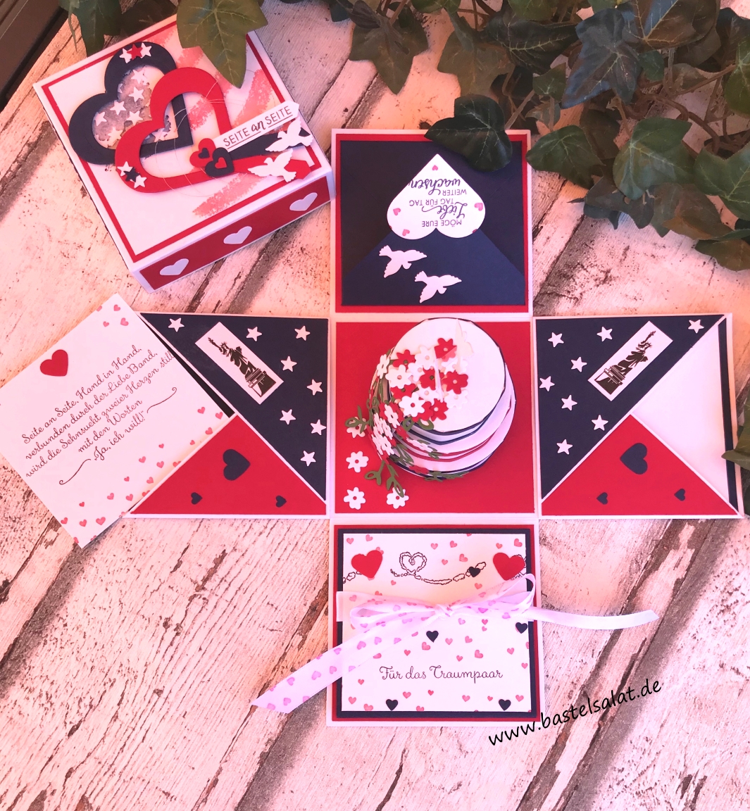 und ein Mini-Album in Leporello Form (wurde noch mit Bildern vom verliebten Paar bestückt), befinden sich im Innenleben der Box.