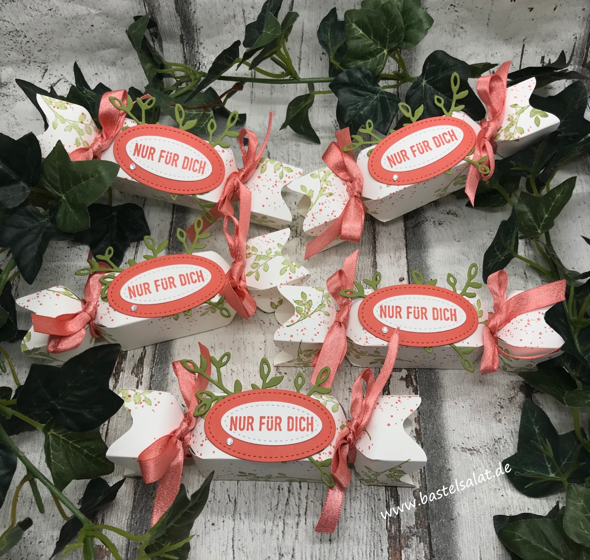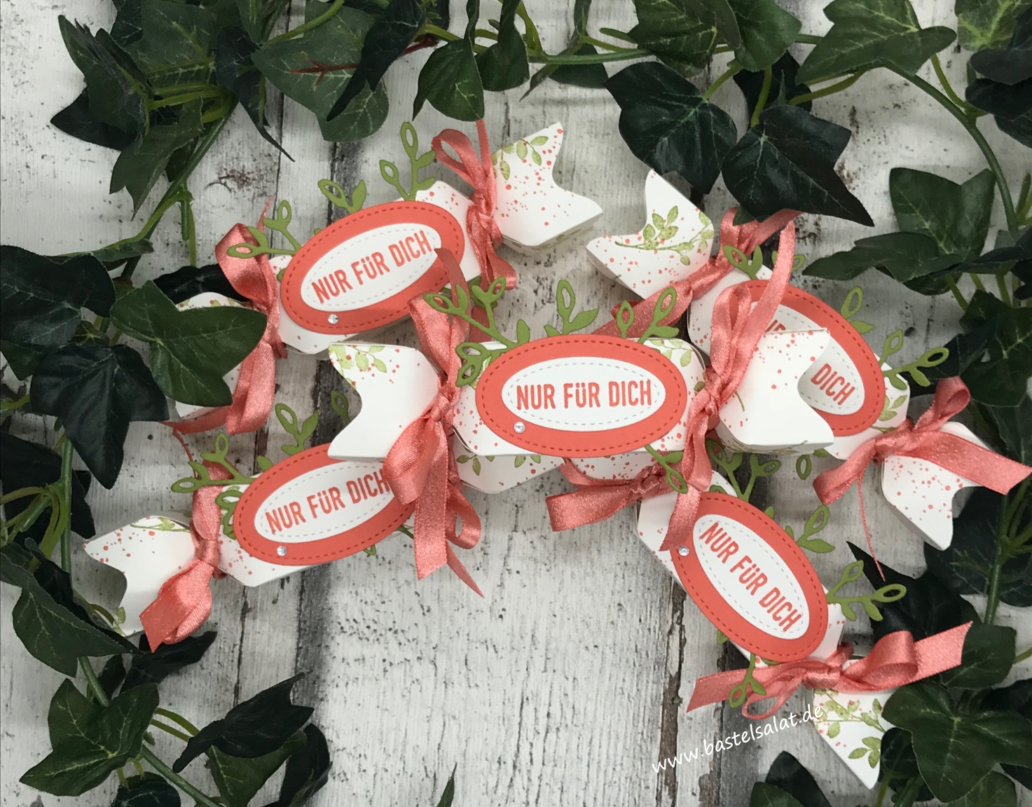 Die Knallbonbons, in denen sich jeweils eine leckere Kokosnusskugel versteckte, sind ebenfalls mit dem Stanz-/ und Falzbrett für Umschläge entstanden.