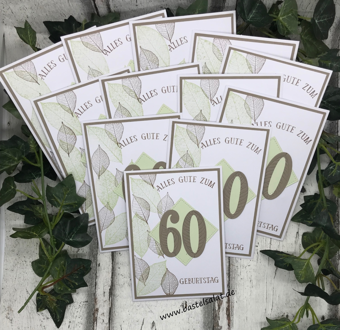 Mit den Farben „Flüsterweiß“, „Taupe“ und „Lindgrün“, meinem Lieblingsset „Kraft der Natur“, dem Stempelset  „So viele Jahre“ und den Framelits/Thinlits „Starke Wurzeln“, „Stickmuster“ und „Große Zahlen“, sind diese Geburtstagskarten auf meinem Basteltisch entstanden.