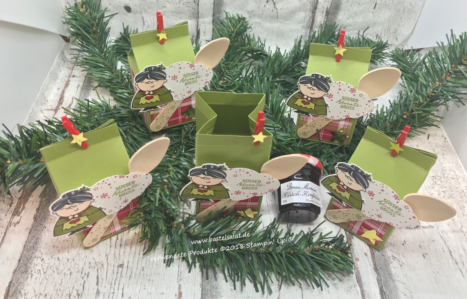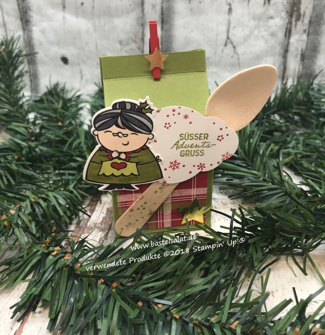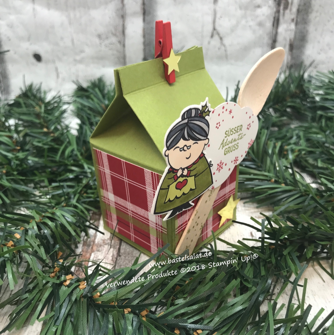 Verschönert wurde der „Olivgrüne“ Milchkarton mit dem Designer Papier „Weihnachtsfreuden“…