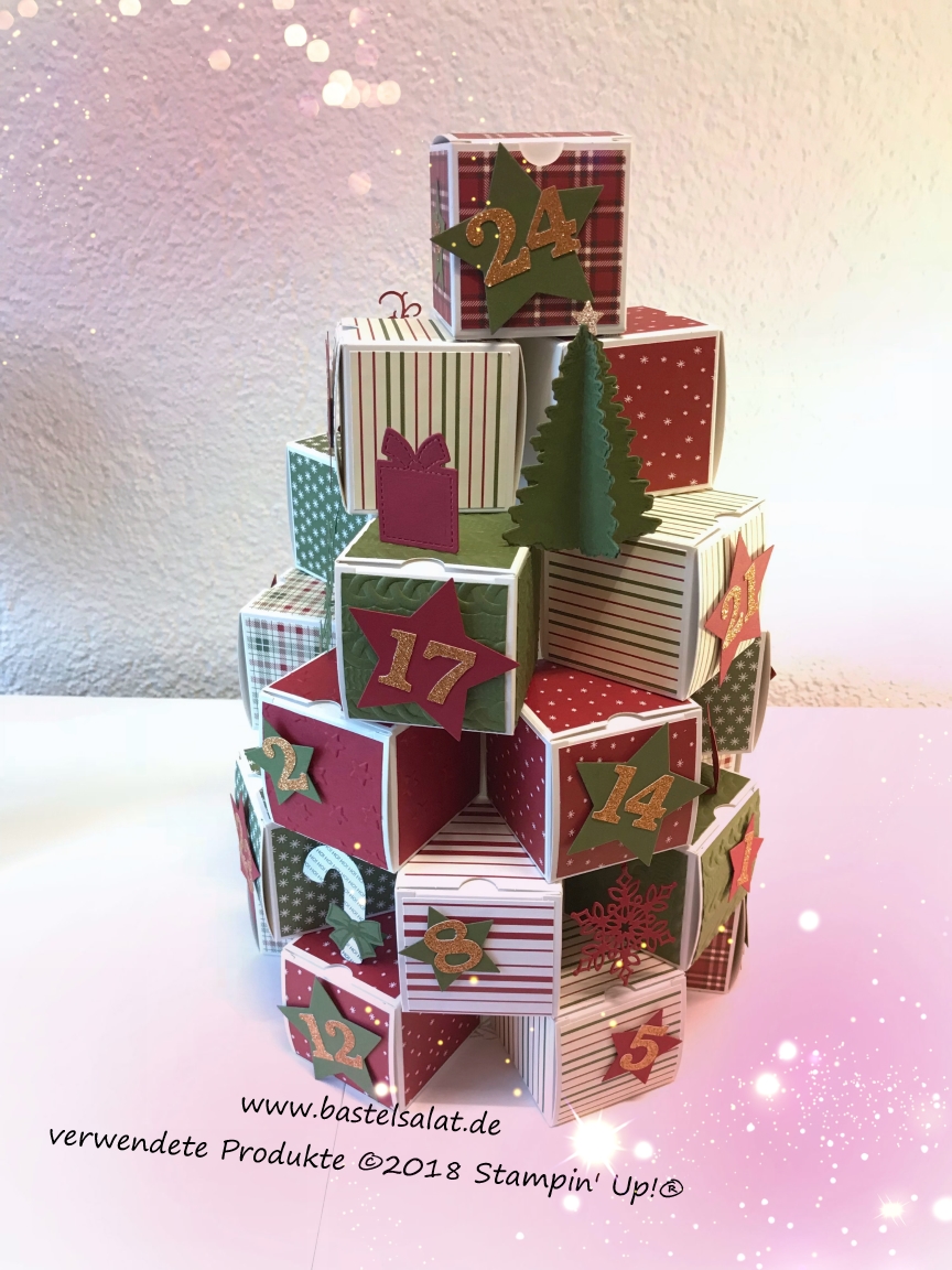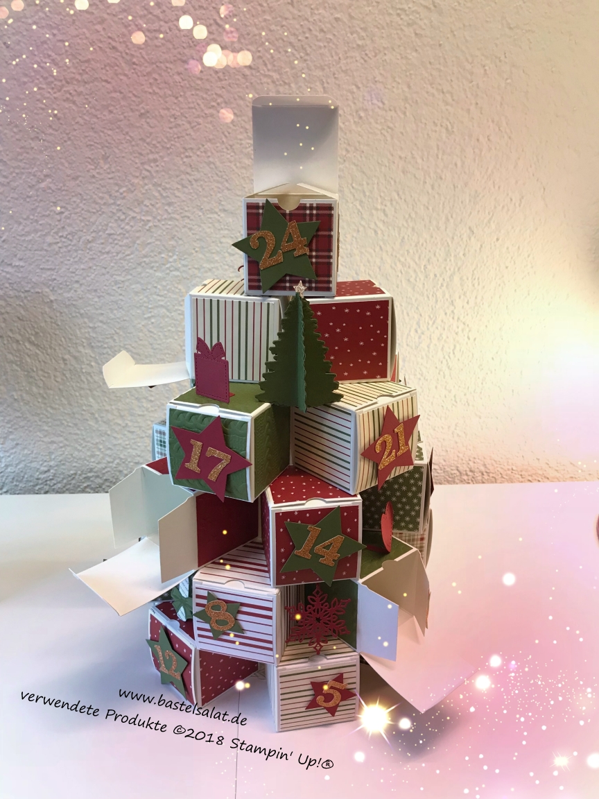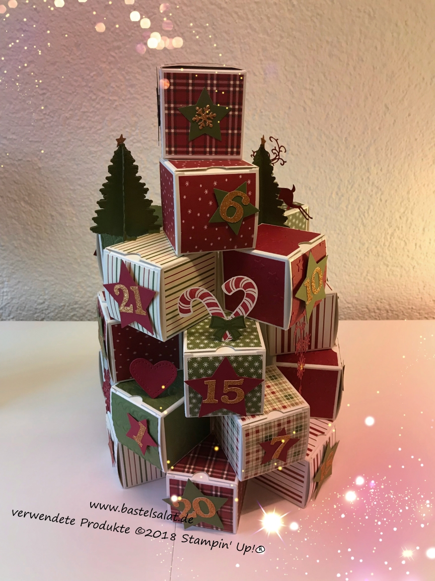 Für den gestrigen „Adventskalender“ Workshop, welcher von 13.00 Uhr – 18.30 Uhr bei mir stattfand, hatte ich diesen Adventskalender Baum vorbereitet.