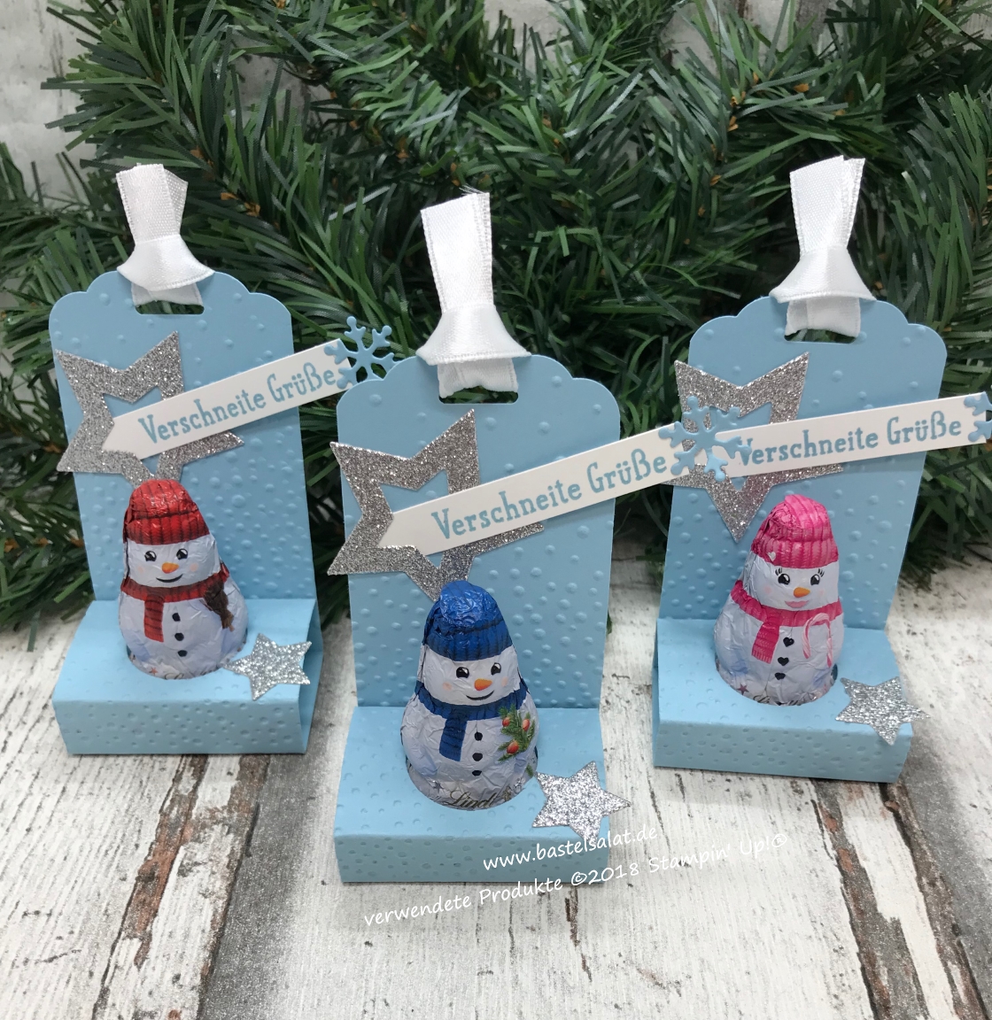 … senden Euch die niedlichen, kleinen Schokoladen Schneemänner.