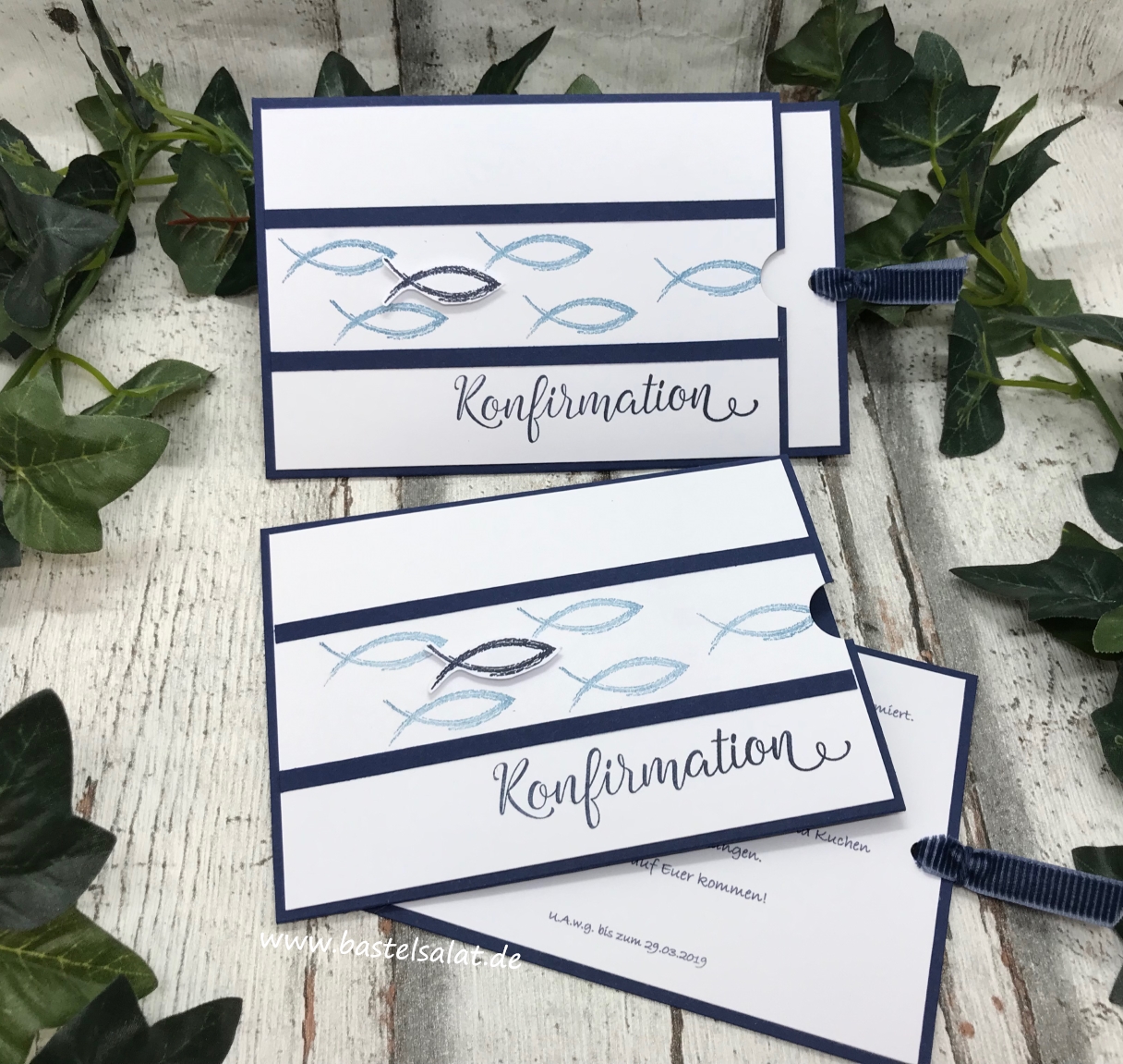 Im Auftrag sind Einladungen in Form einer „Einsteckkarte“ zur Konfirmation entstanden.