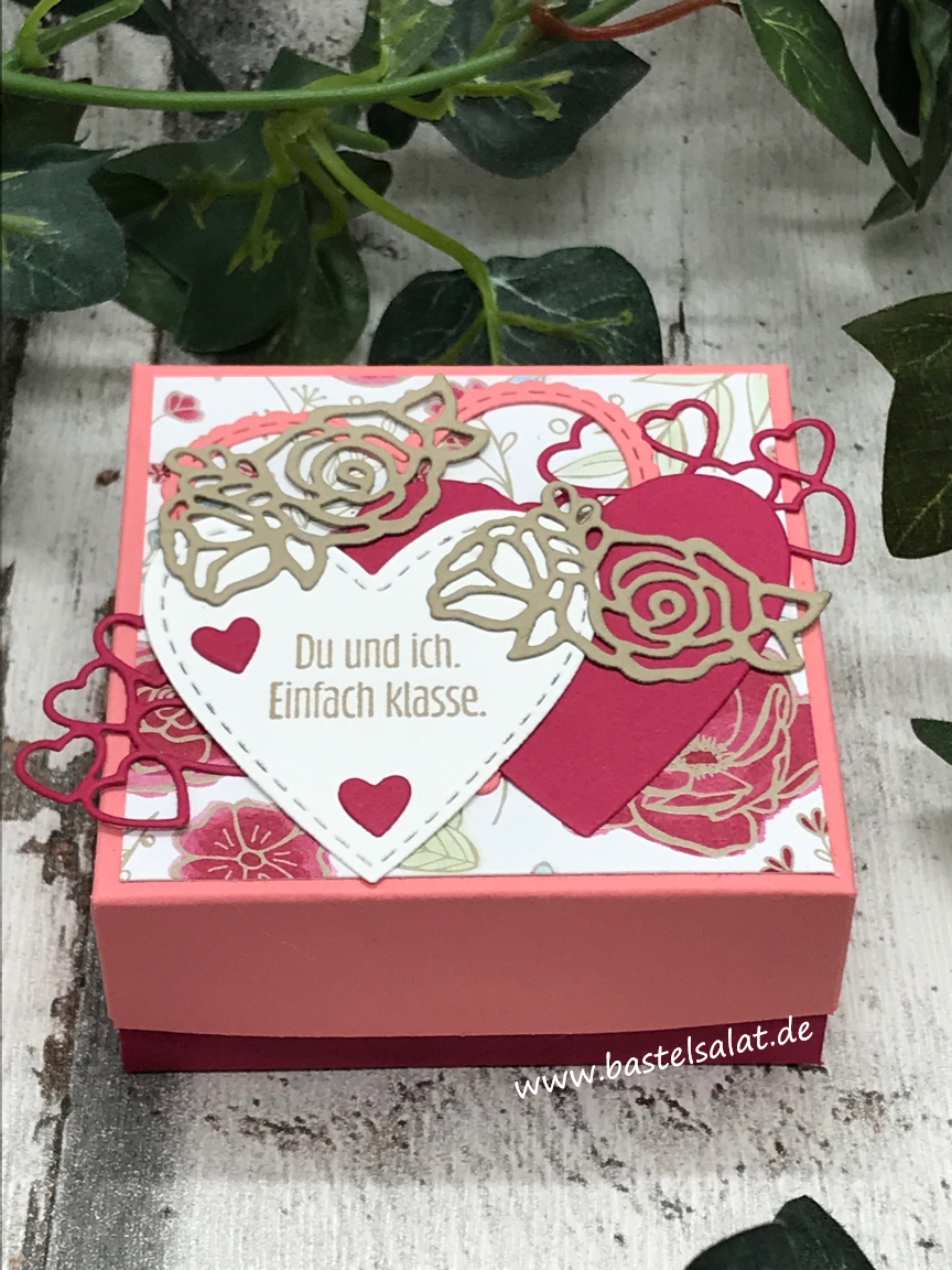 Da der Valentinstag ja nicht mehr weit entfernt ist, hatte ich als zweites Workshop Projekt eine „Valentinsbox“, vorbereitet.