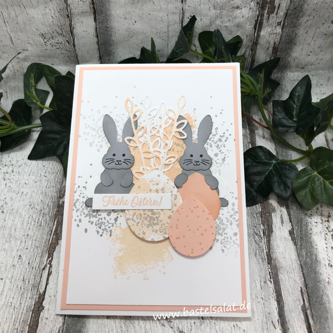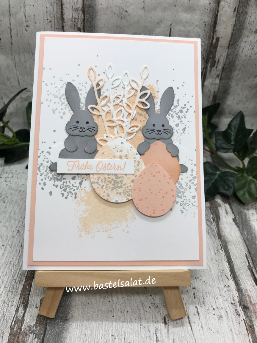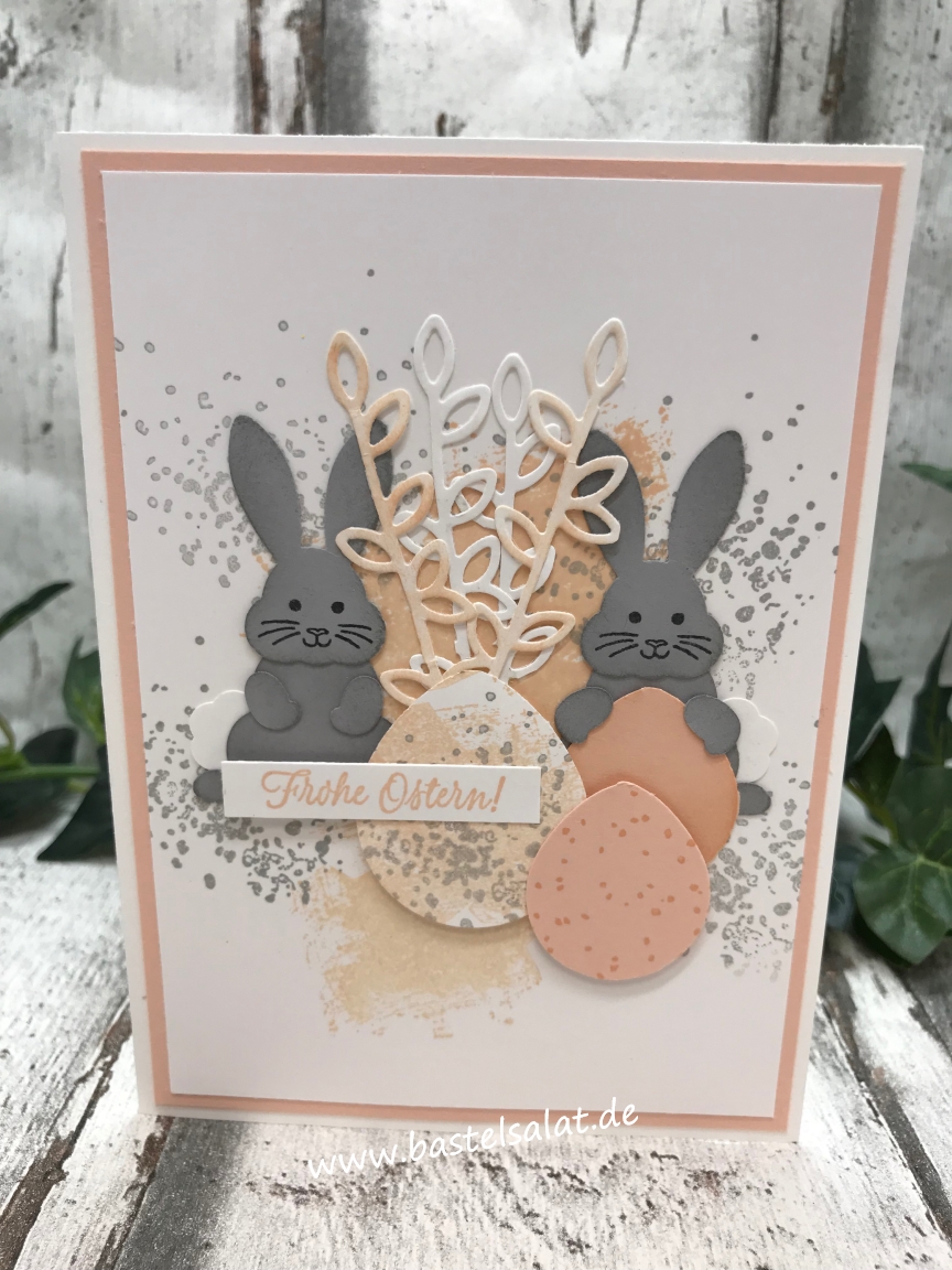 Einige niedlich Osterkarten sind mit dem Set „Hasengrüße“ (Stempelset „Hasengrüße“ + Stanze „Häschen“) in meinem Bastelreich entstanden.