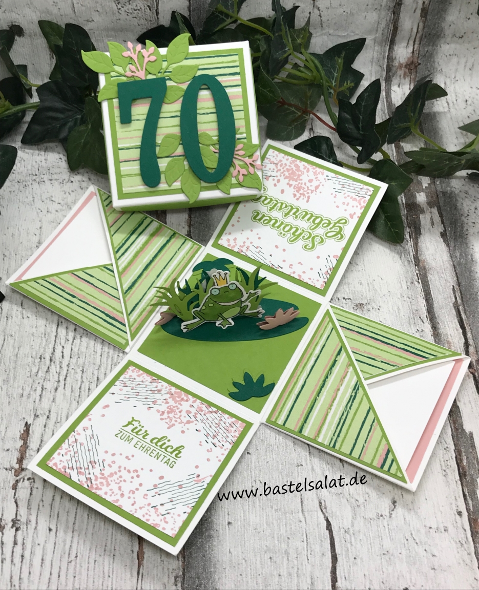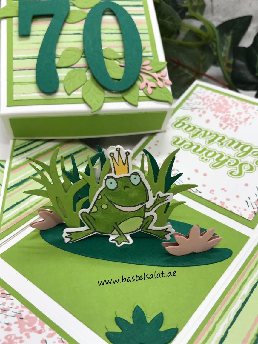 sowie das SaleABration Stempelset „Froschkönig“ mit den dazu passenden Framelits „Am Froschteich“ verwendet.