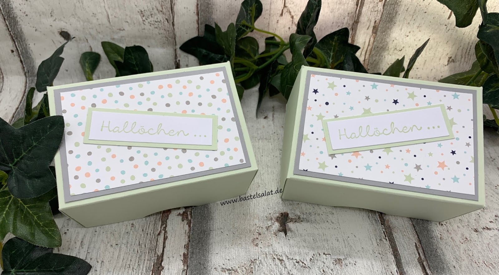 Um diese Nachricht noch ein wenig aufregender/spannender zu überbringen, sind ein paar kleine „Familiennachwuchsboxen“ von meinem Basteltisch gehüpft.