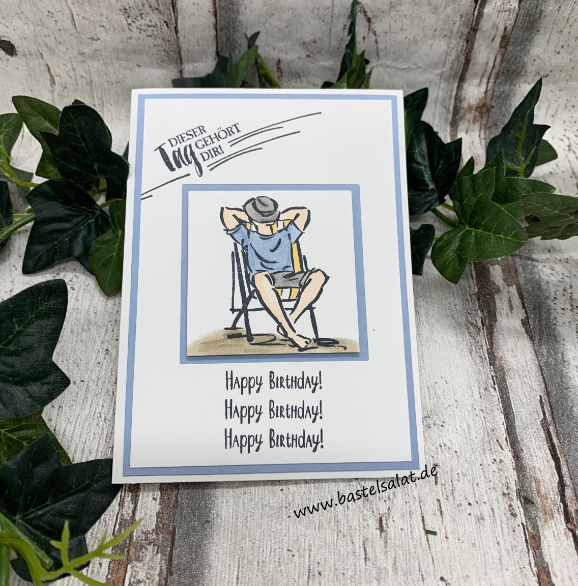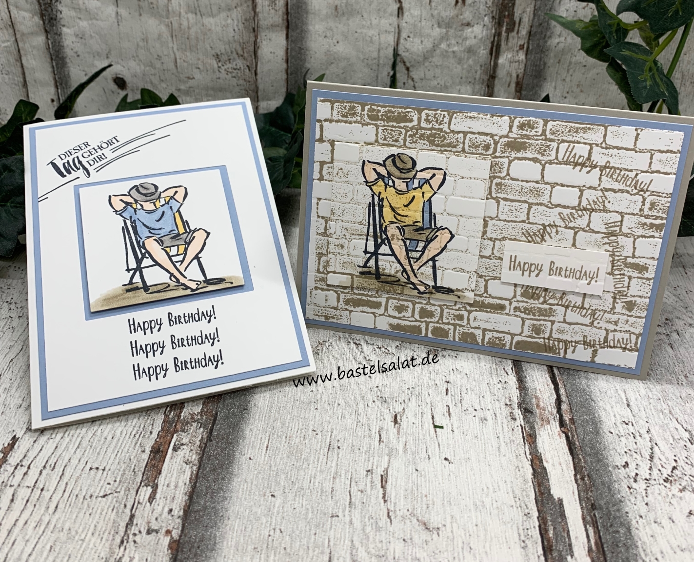 … heißt das tolle Stempelset, aus dem der chillende Herr stammt, was bei diesen beiden männlichen Geburtstagskarten zum Einsatz kam.