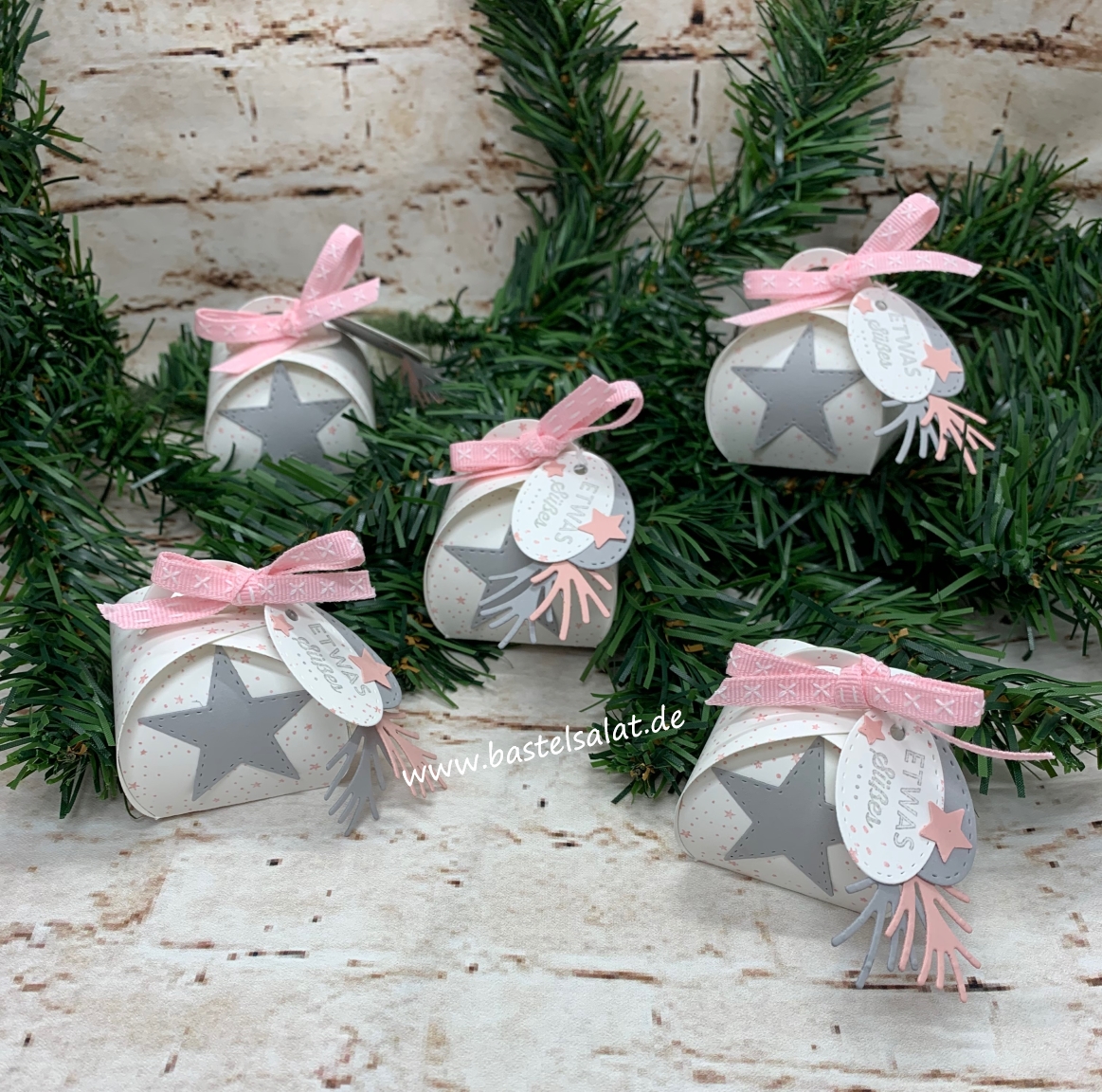 Die total niedlichen Mini-Zierschachtel sind super fix gemacht. Einmal kurbeln, ggf. den Farbkarton bestempeln, füllen, verzieren/dekorieren -> fertig!.