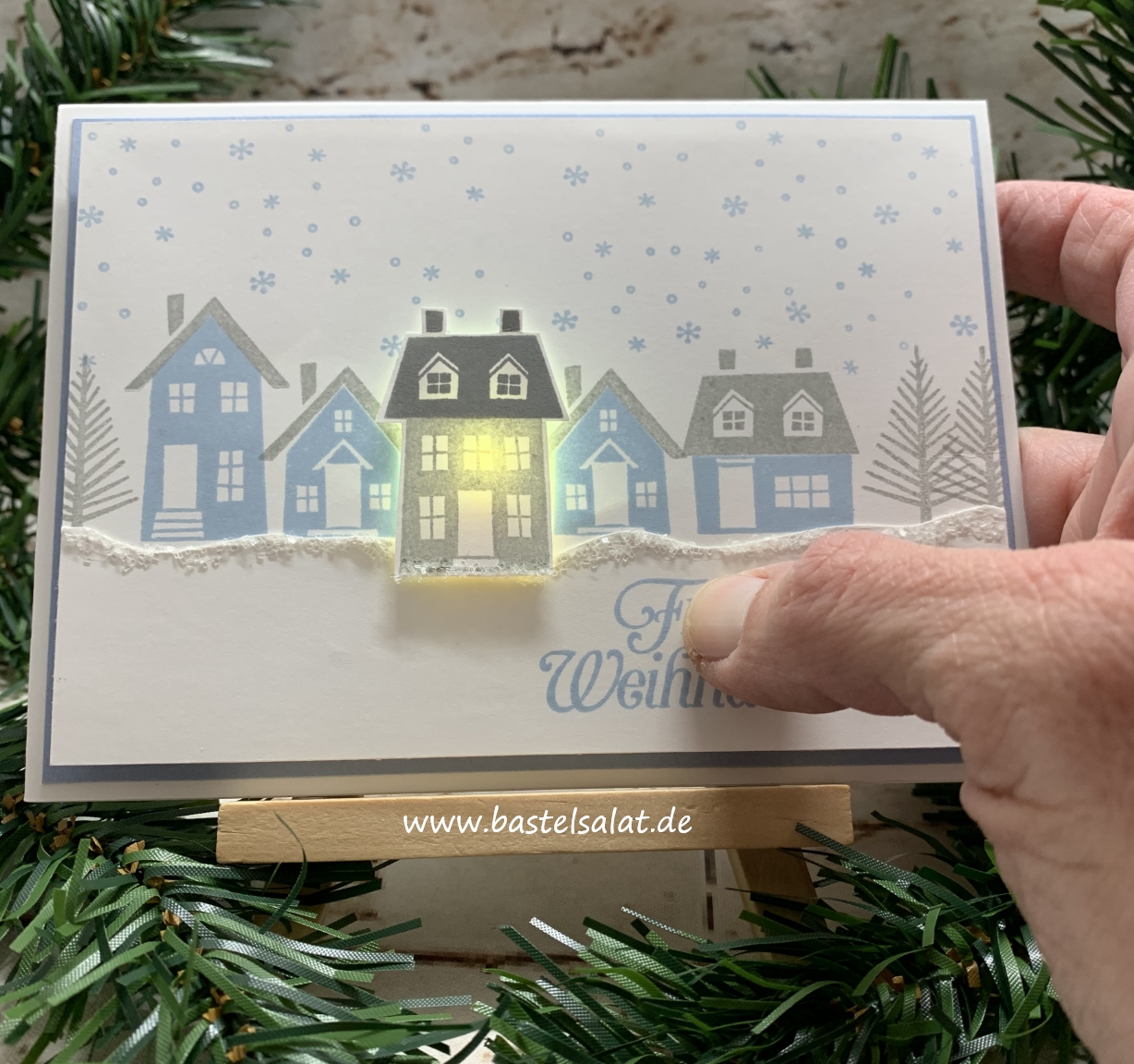 Damit auch das Häuschen leuchtet und die LED nicht irgendwo hinter dem Kartenlayer aufleuchtet, ist auch ein genaues ausmessen wichtig gewesen. Alle Teilnehmerinnen habe das Projekt erfolgreich gemeistert.