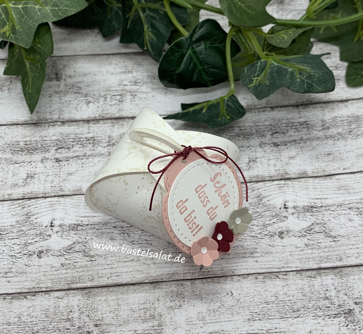 Findet Ihr auch das die hier verwendeten Farben – Flüsterweiß, Kirschblüte, Saharasand und Merlrot – super mit einander harmonieren? Mit persönlich gefällt diese Farbkombination unheimlich gut.