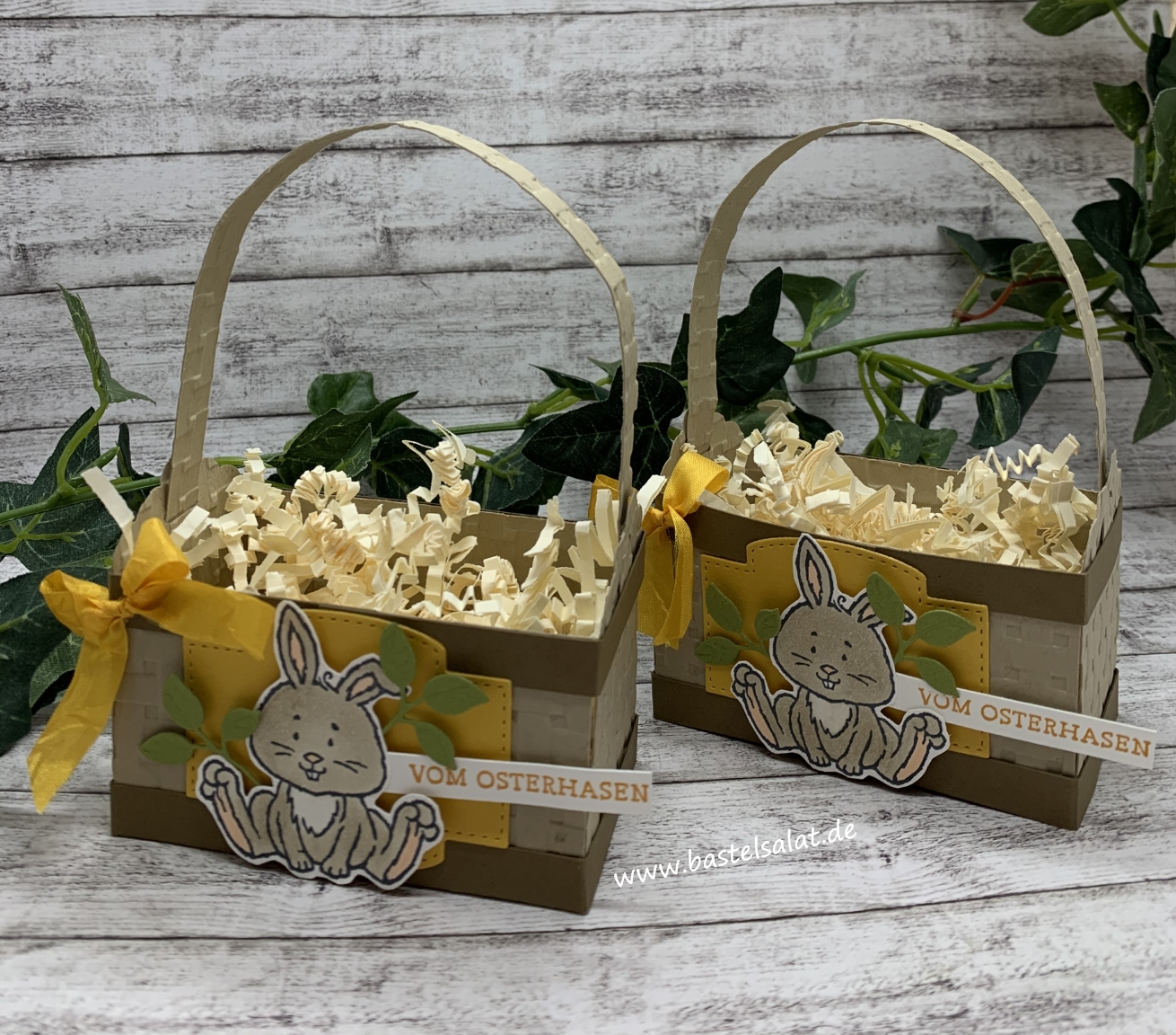 Beim dekorieren/verzieren der kleinen Körbchen habe ich das schöne Stempelset „Osterschatz“ sowie die Stanzformen „So hübsch bestickt“ und „Geburtstag“ verwendet.