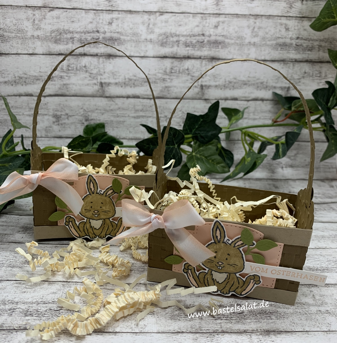 Beim dekorieren/verzieren der kleinen Körbchen habe ich das schöne Stempelset „Osterschatz“ sowie die Stanzformen „So hübsch bestickt“ und „Geburtstag“ verwendet.