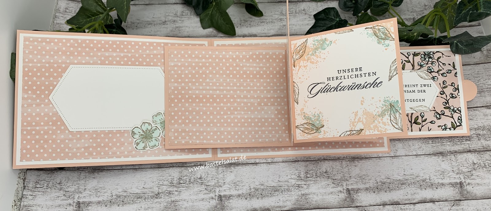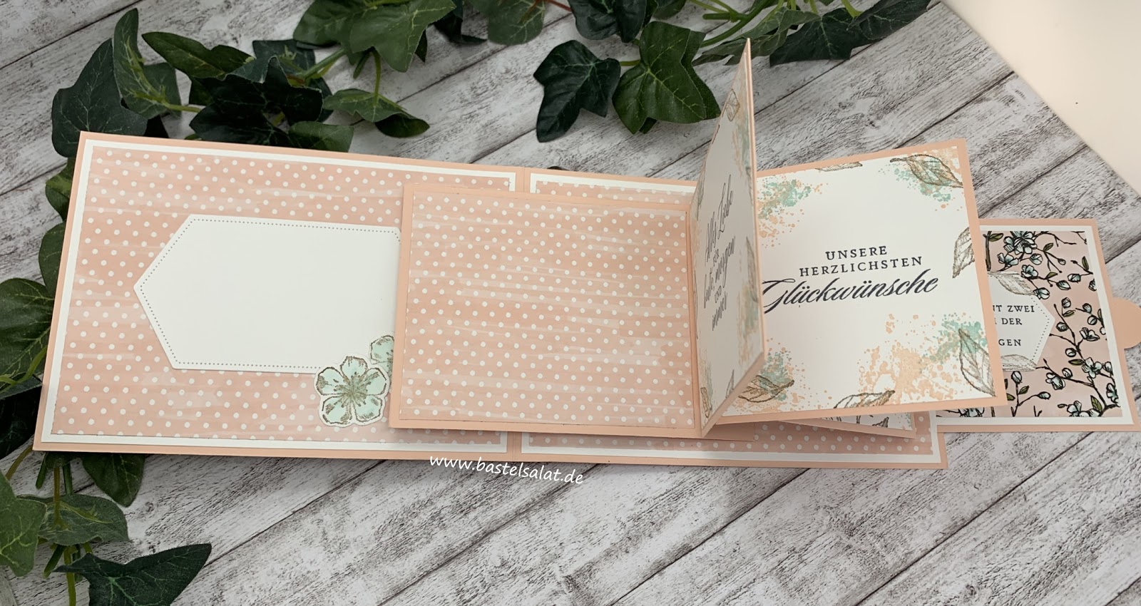 Da bei dieser Kartenart die einzelnen Klappen unterschiedlicher Größe bzw. Breite sind kommen die unteren Klappen erst zum Vorschein wenn man an der Lasche zieht. Das gefällt mir persönlich unheimlich gut.