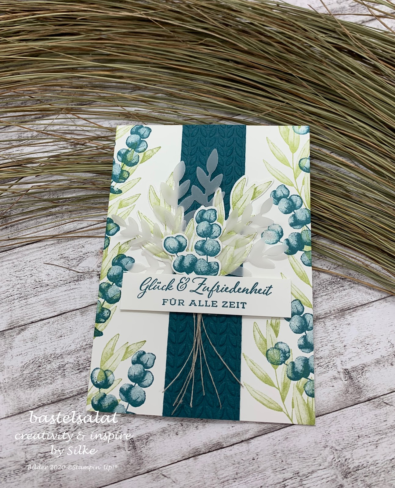 Da ich im Moment das super schöne, dazu passende Designerpapier „Ewiges Grün“ lieber noch ein bisschen streicheln möchte,