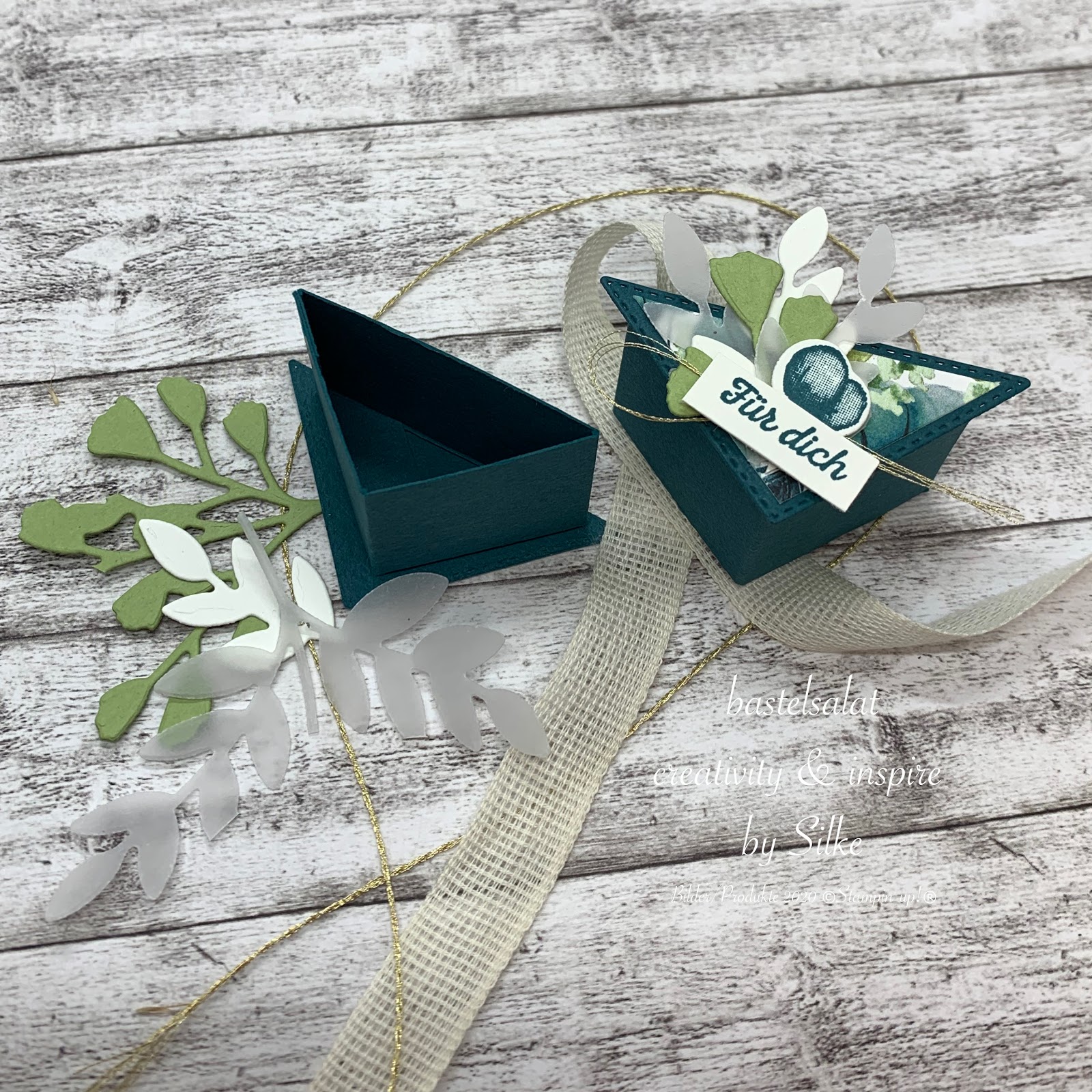 In meinem Blog Beitrag vom 21. Juni 2020 hatte ich Euch ja bereits schonmal gezeigt wie Ihr die große Dreiecksverpackung, da aber mit dem tollen Set Pfingstrose, mit den Stanzformen „Bestickte Dreiecke“ ganz leicht zaubern könnt.