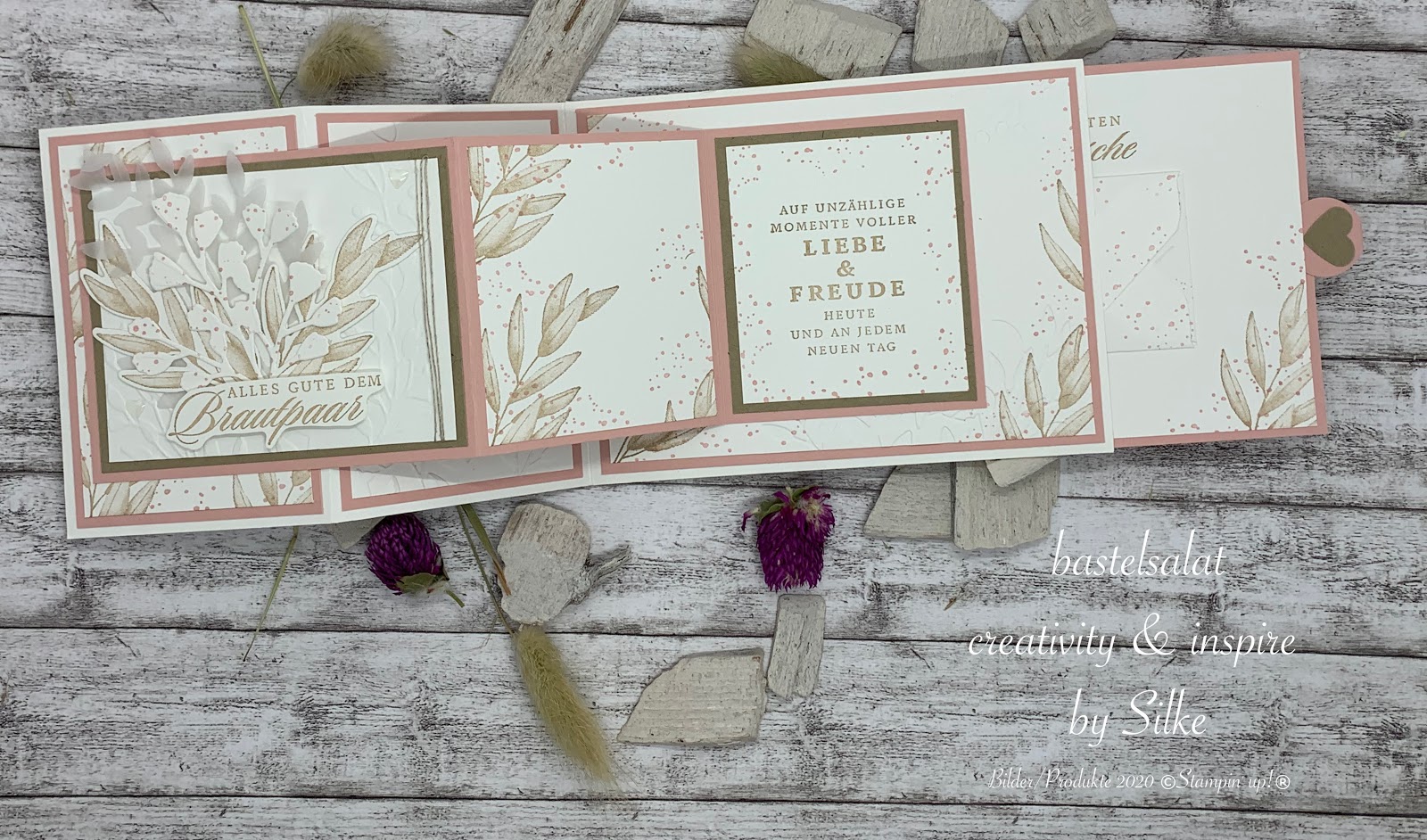 heute möchte ich Euch gerne eine Hochzeitskarte, in Double Z Fold Format, mit versteckten Glückwünschen zeigen.