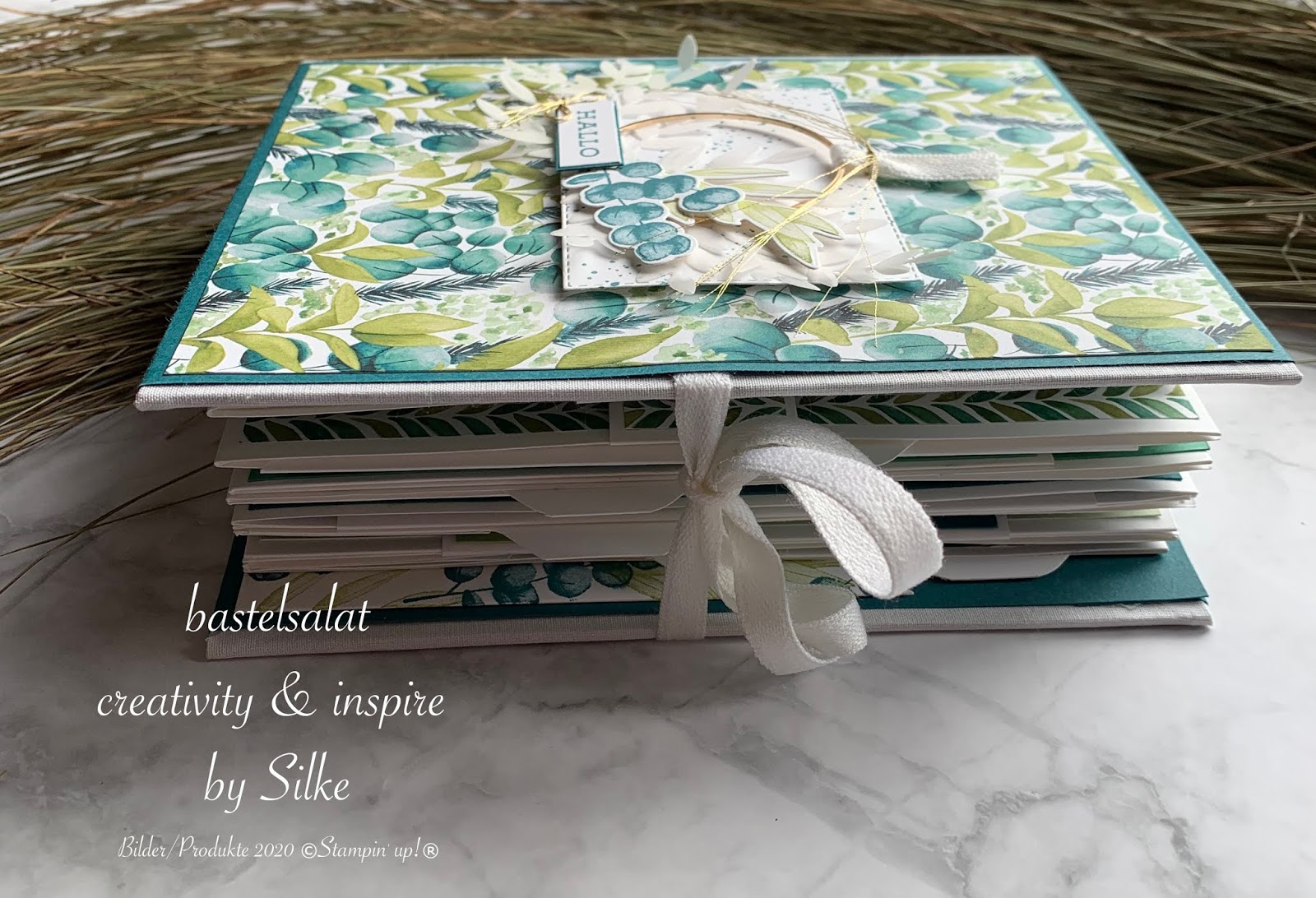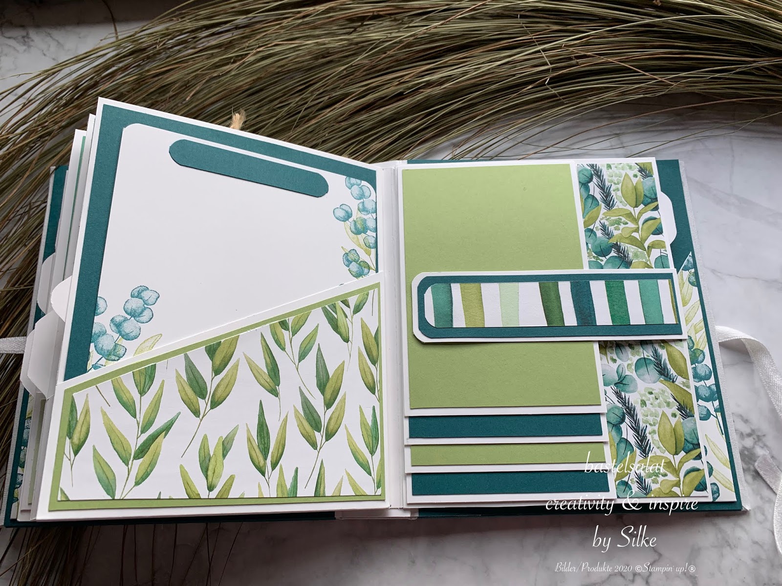 schön das Ihr wieder auf meinem Blog vorbeischaut. Heute möchte ich Euch ein weiteres Minialbum, welches diesmal mit den schönen neuen Produkten aus der Produktreihe „Ewiges Grün“ entstanden ist, zeigen.