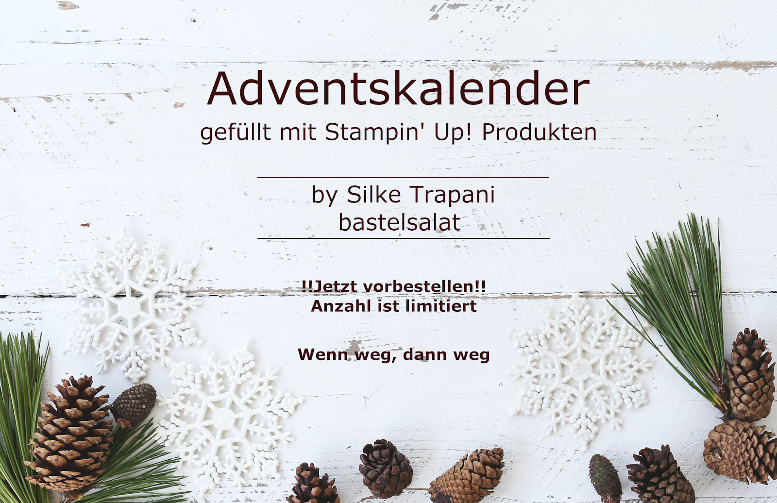 auch wenn wir bei aktuellen Aussentemperaturen von mehr als 30 Grad noch nicht in Weihnachtsstimmung sind möchte ich Euch gerne mitteilen das ich dieses Jahr einen Adventskalender gefüllt mit Stampin‘ Up! Produkten anbieten werde.