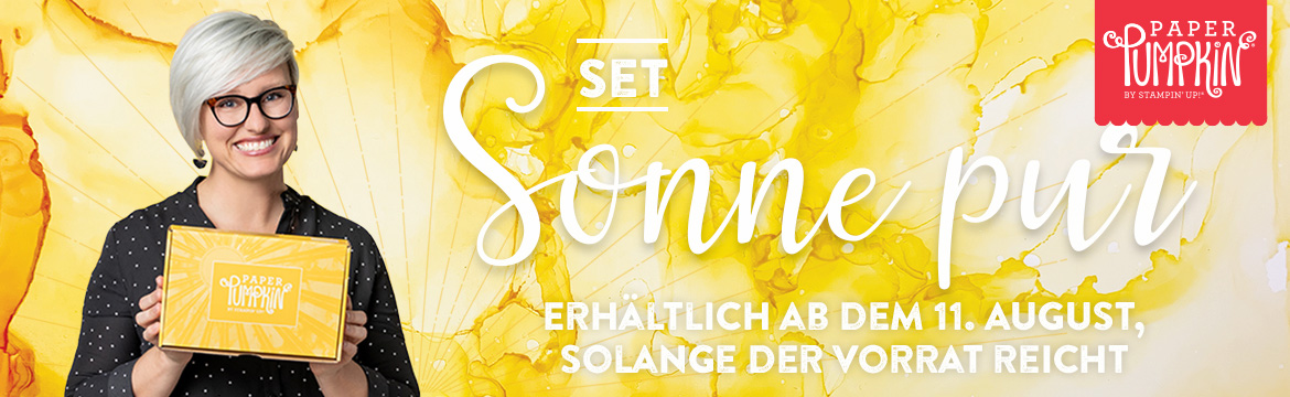 AB SOFORT kannst Du bei mir Dein Paper Pampkin Set „Sonne pur“ vorbestellen und ich bestelle dieses dann sofort am 11. August für Dich bei Stampin‘ Up!. Die Auslieferung meinerseits erfolgt dann (wenn die Post schnell ist 😅 ab dem 13./14. August 2020.