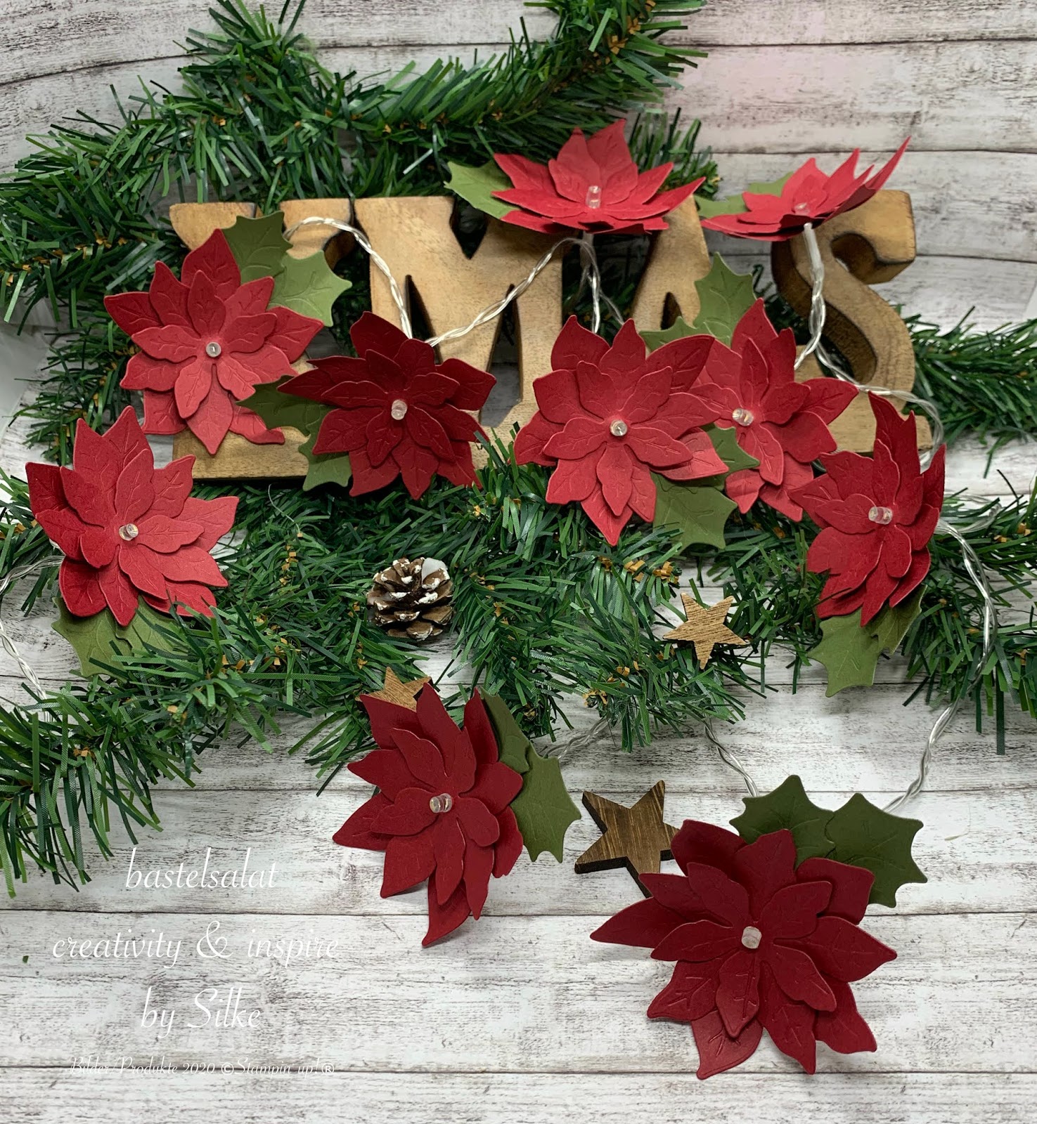 Diese Woche ist bei mir zu Hause die Herbstdeko eingezogen und die Sommerdeko, darunter war dann auch meine Gänseblümchenlichterketteaus 2019, wurde schön brav in Kartons verstaut und in den Keller geräumt. Und als ich so am herbstlich dekorieren war schoss mir eine Idee in den Kopf. Also schnell fertig dekoriert ran an den Basteltisch und tada….. meine erste Weihnachtsdeko für dieses Jahr ist entstanden.