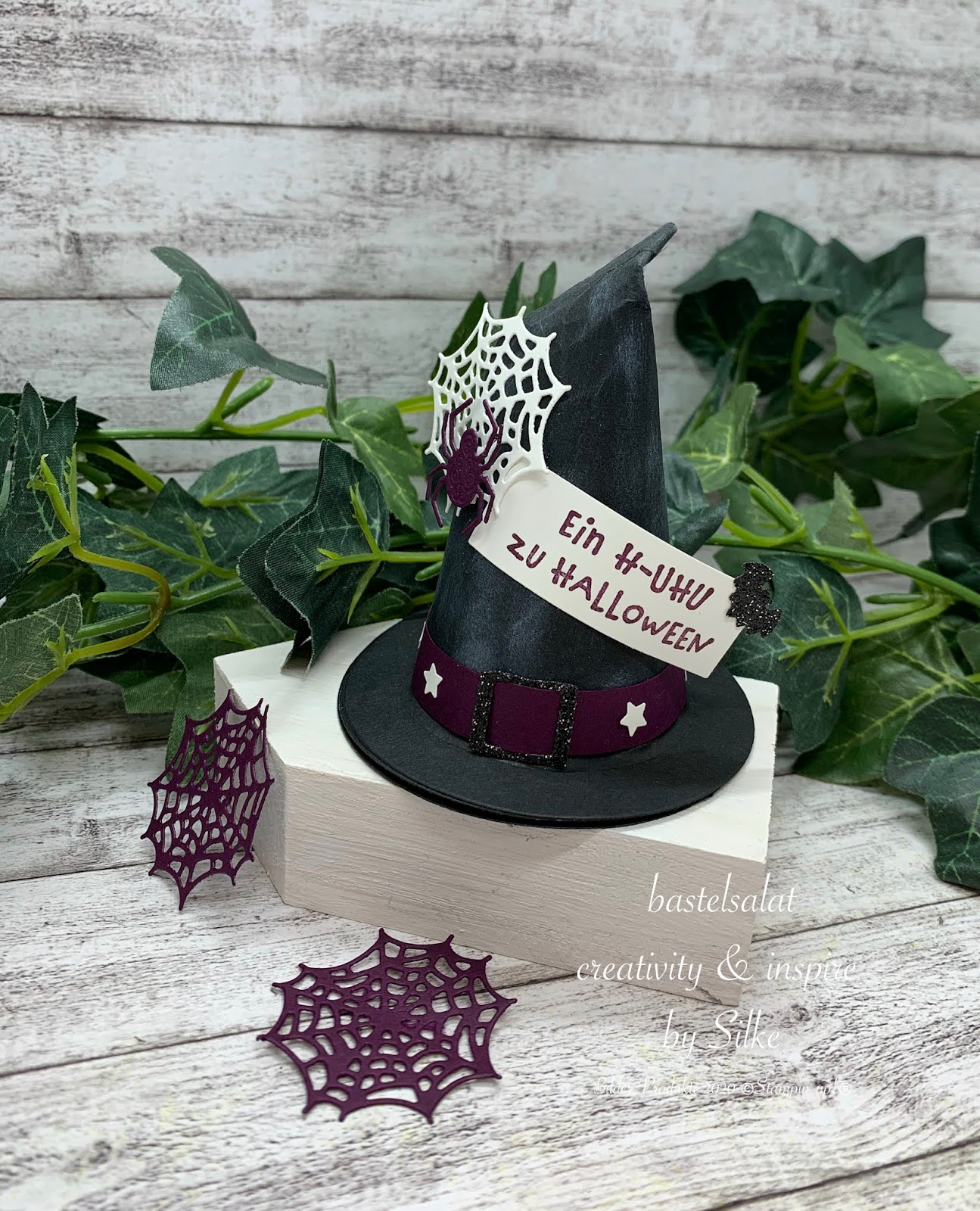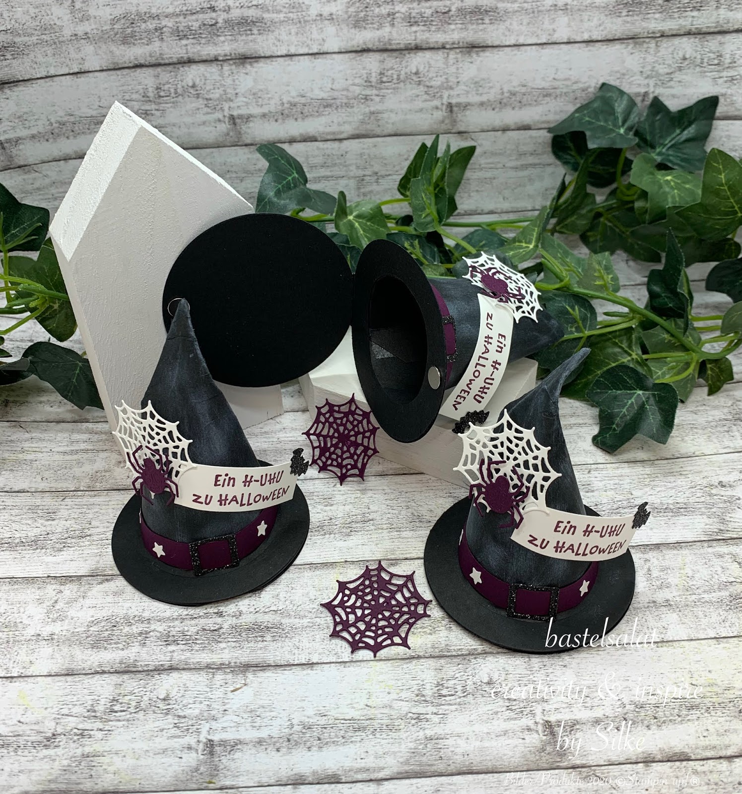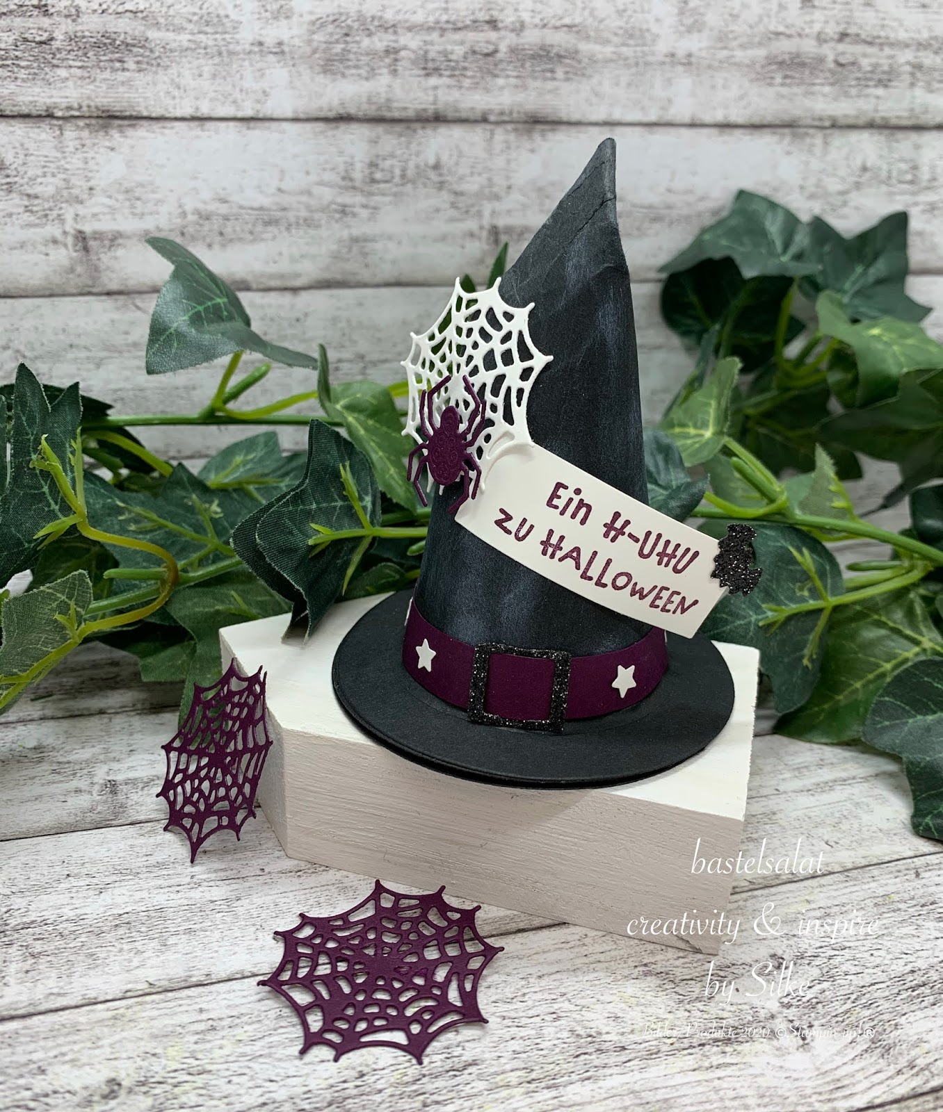 Wie Ihr ja bestimmt schon mitbekommen habt, habe ich mit Halloween ja nicht so viel am Hut, ich aber schließlich Herausforderungen liebe, mir auch zum Glück ein paar Ideen im Kopf herumschwirrten 😅, sind ein paar Süßigkeiten-Verpackungen in Form von Hexenhüten auf meinem Basteltisch entstanden.