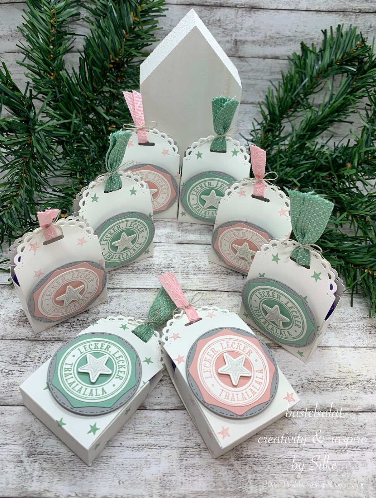 Auf meinen kleinen Geschenken, die mit der Stanzform Mini-Geschenkschachtel entstanden sind, hat sich ein wesentlich kleinerer aber fast so ähnlich klingenden Text, verewigt.