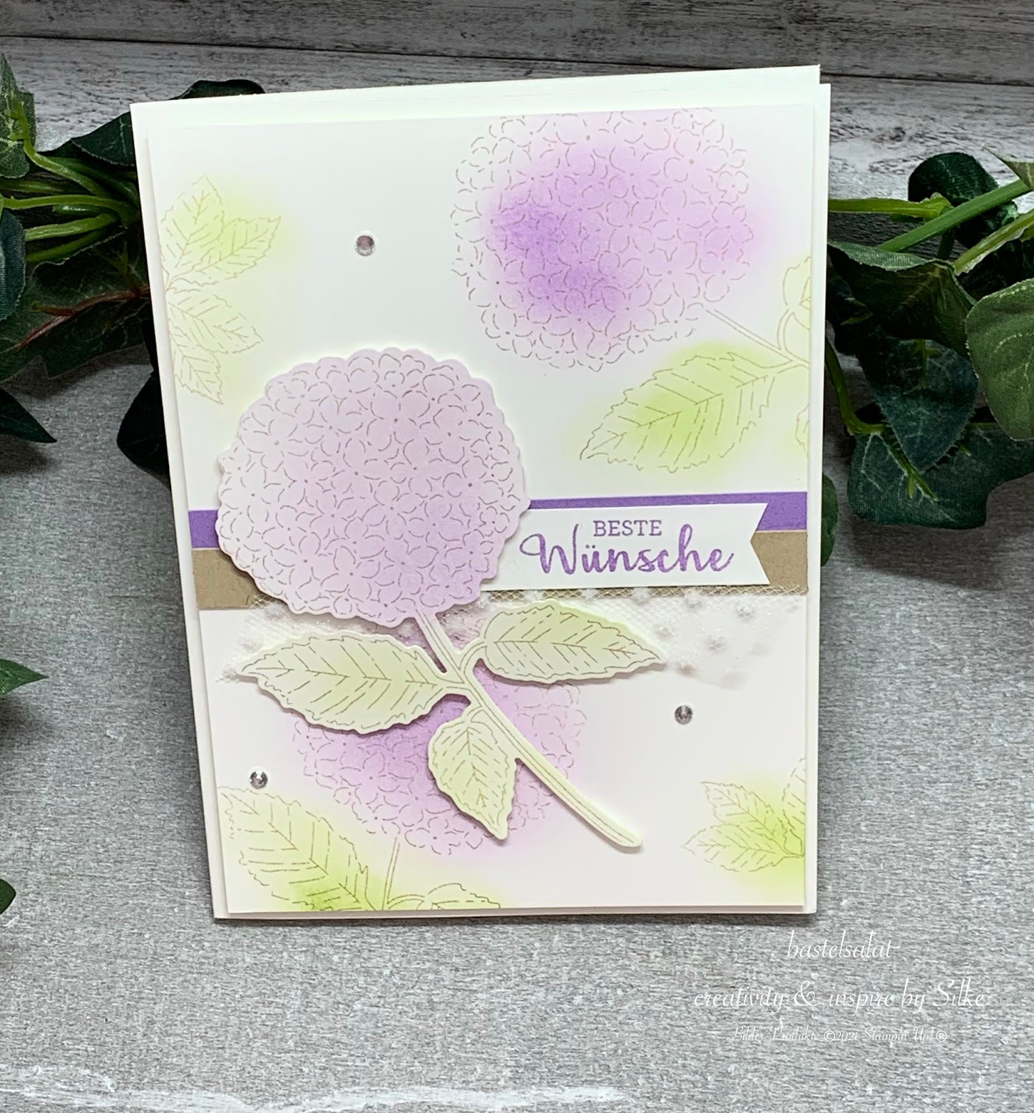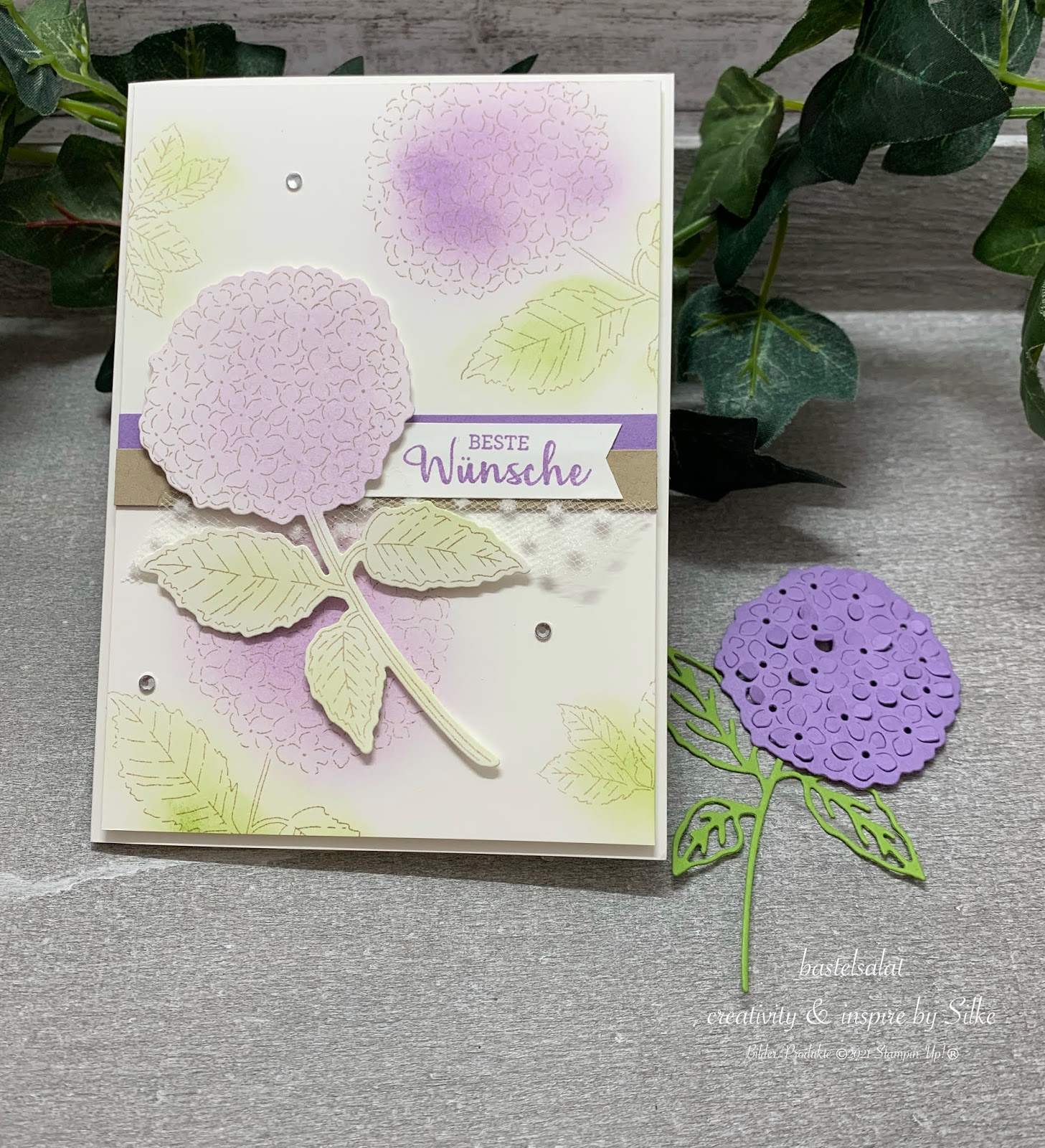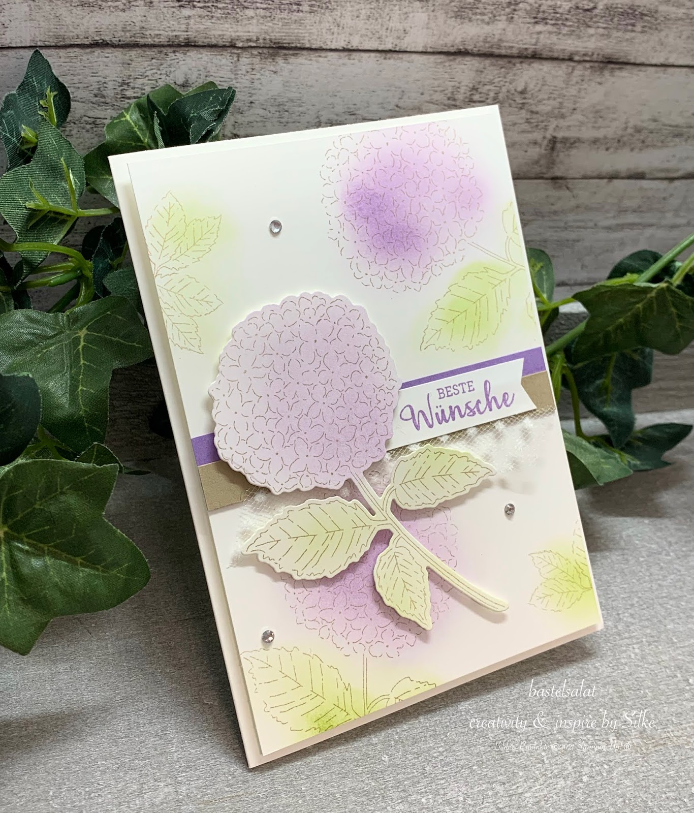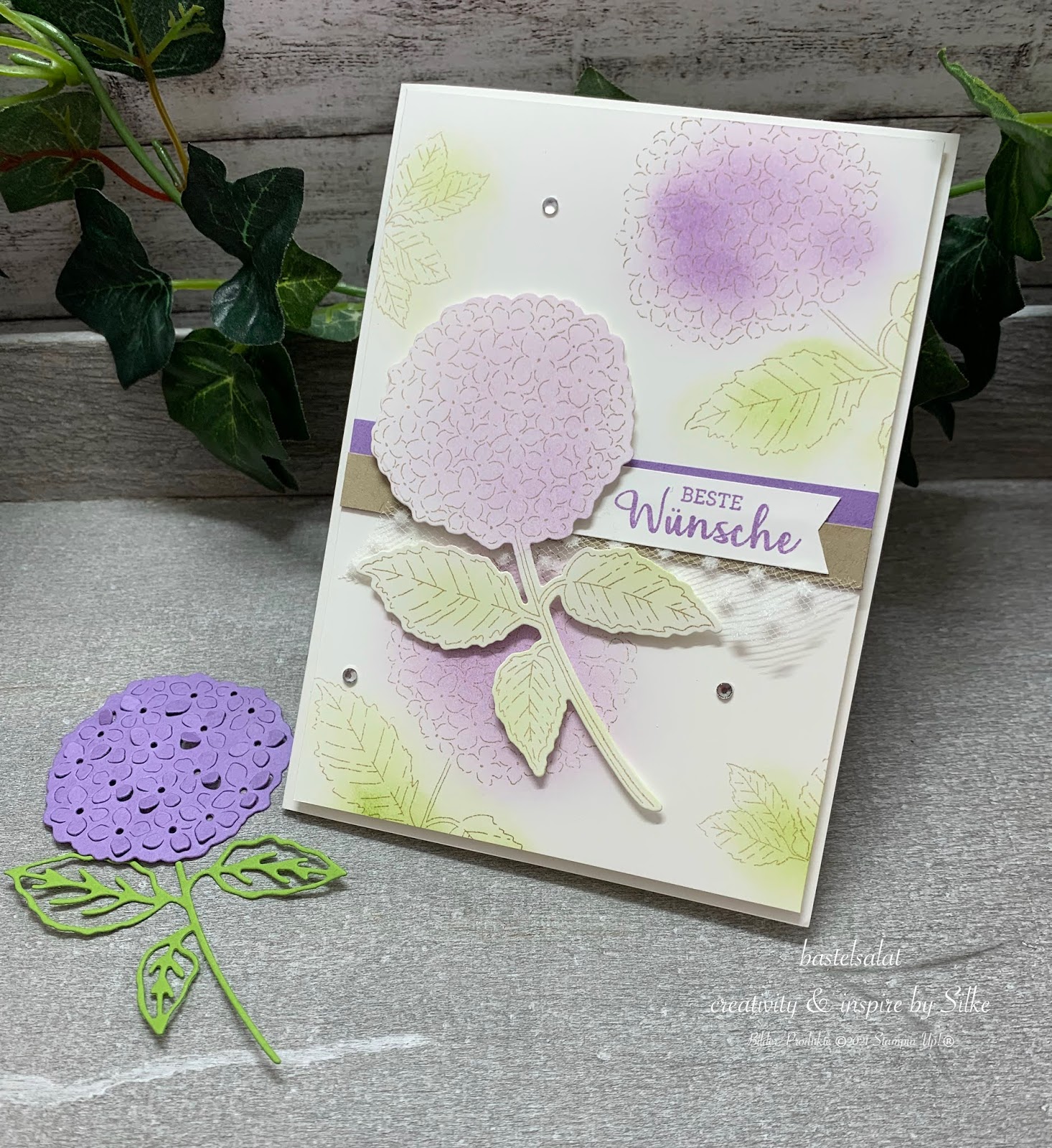 Da mir beim ansehen dieser Kombi sofort das tolle Produktpaket „Herrliche Hortensie“, welches Ihr im Minikatalog auf Seite 20 findet, in den Sinn kam, habe ich damit dann natürlich auch direkt mal etwas gezaubert.