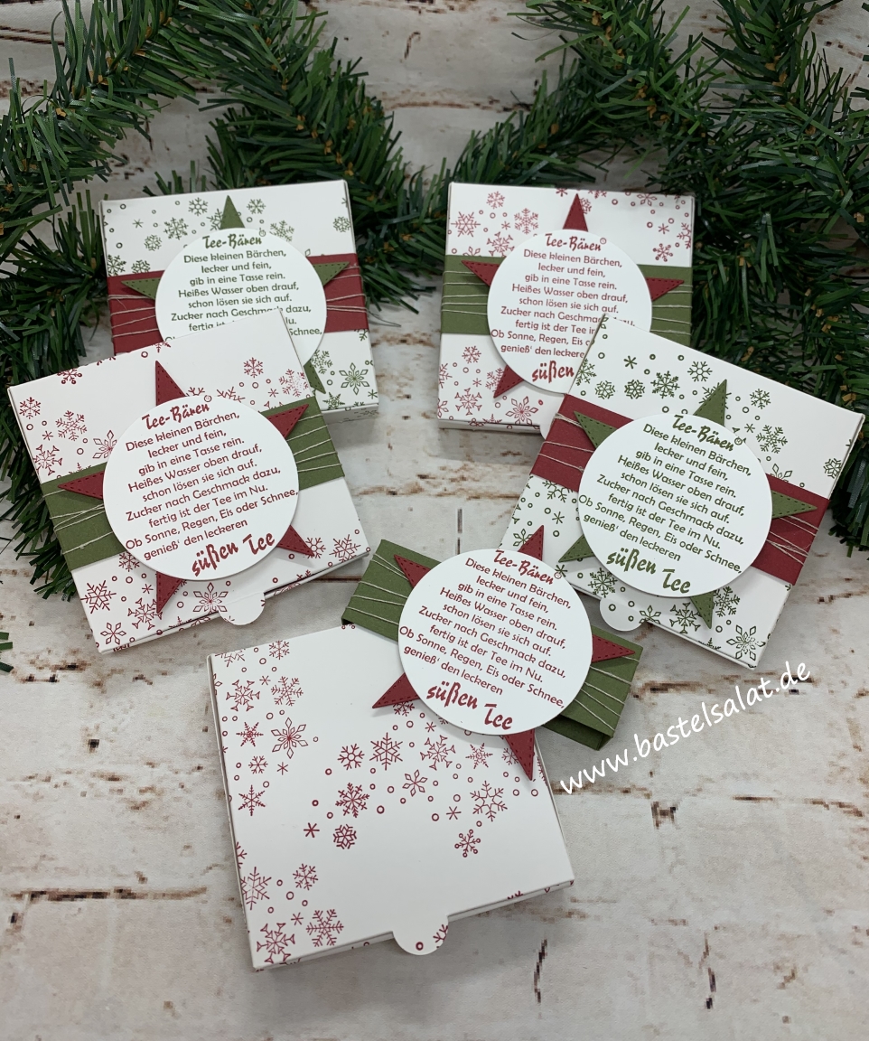 Aber nicht nur die leckeren, süßen Tee-Bären® habe Platz in dem Pizzakarton. Auch ein kleiner Zimtstern und ein bisschen Zucker passen dort noch hervorragend hinein.